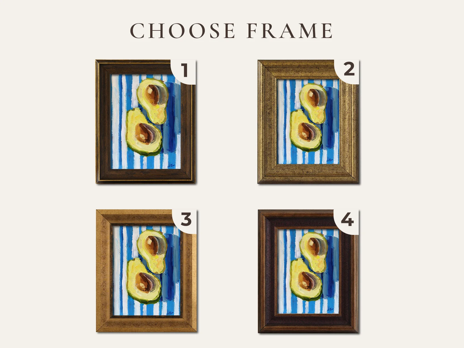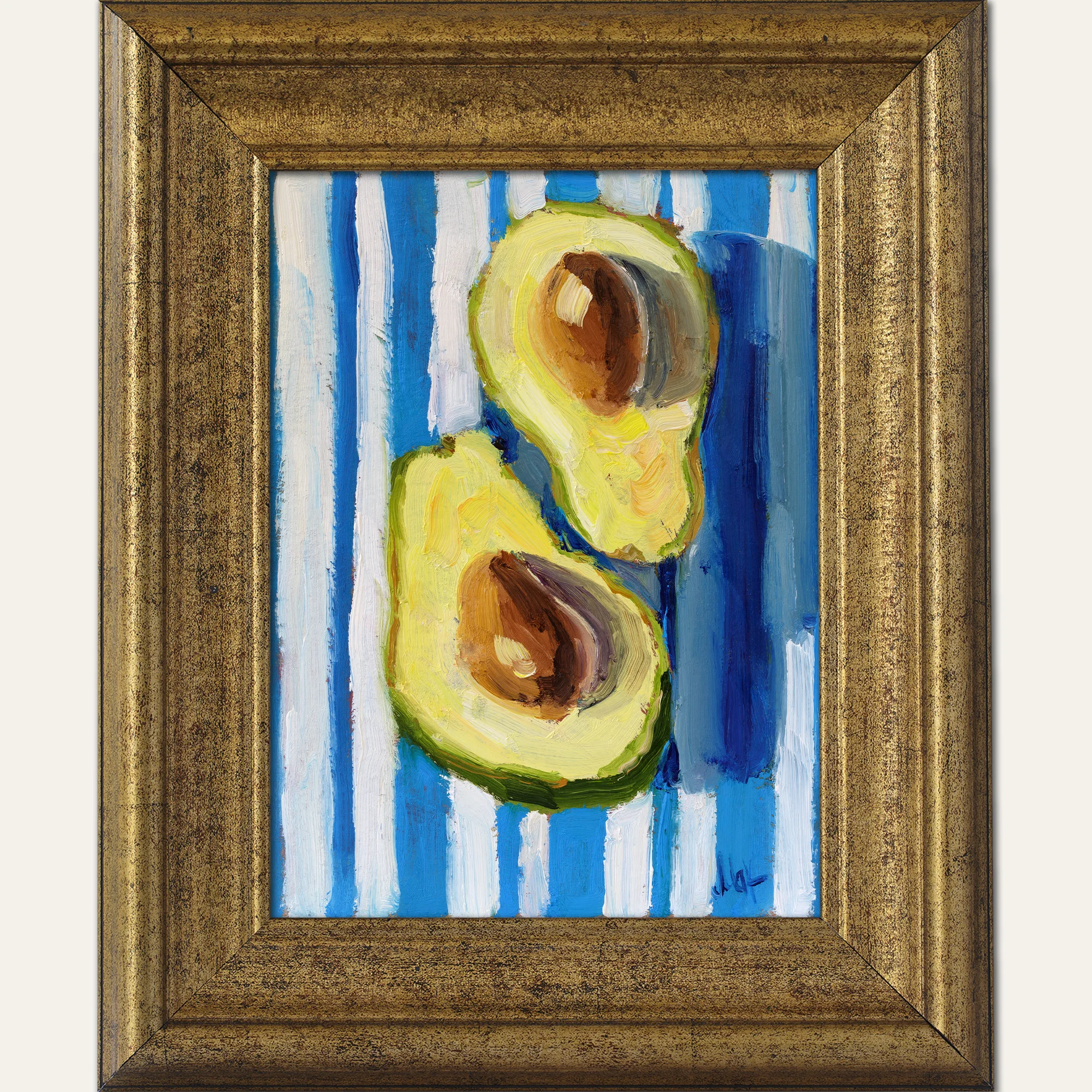 Avocado Original Oil Painting Framed Fruit Still Life Wall Art Food Artwork Vegetable Decor