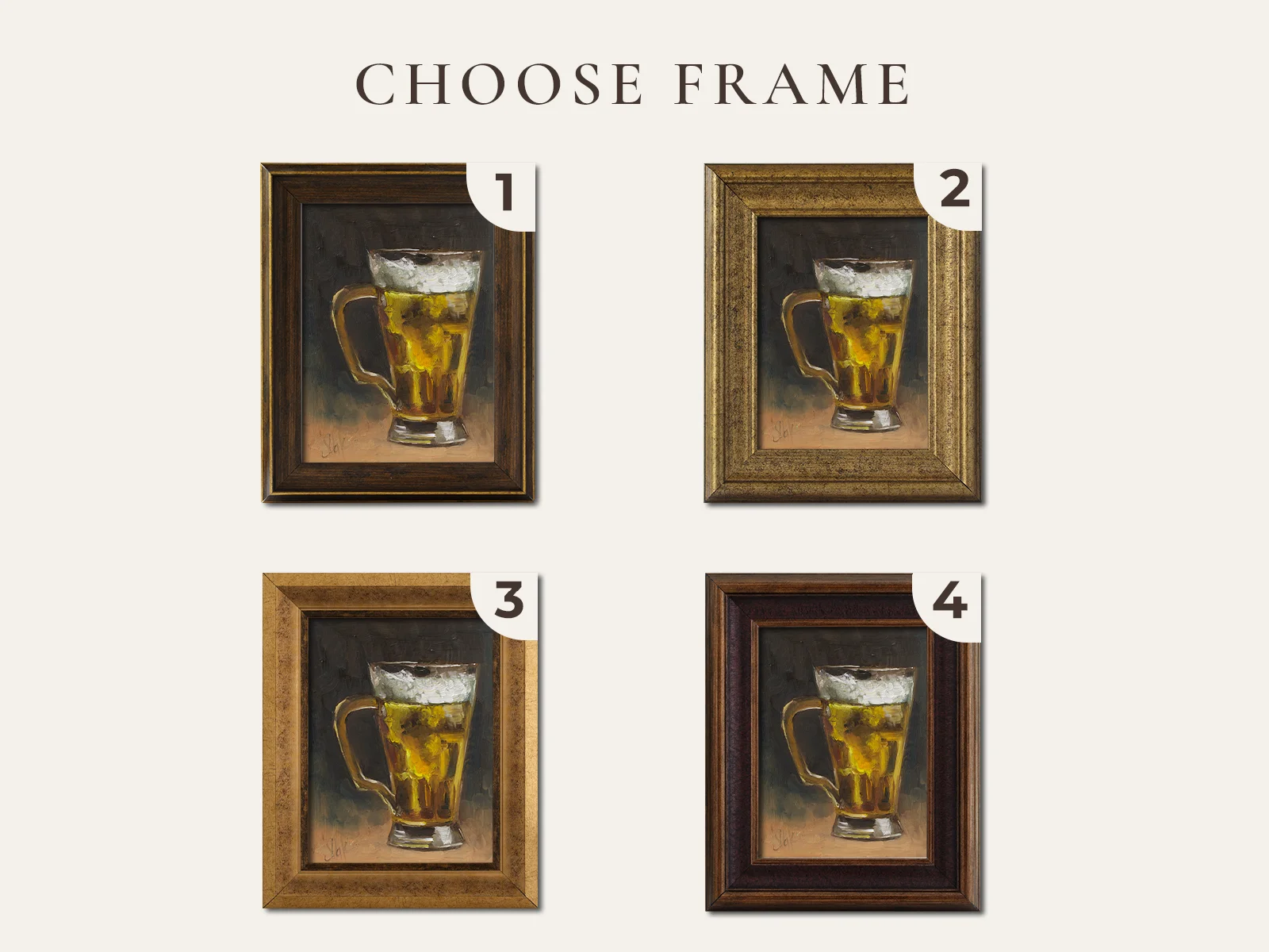 Beer Oil Painting Framed Cocktail Wall Art Original Still Life Artwork Bar Decor