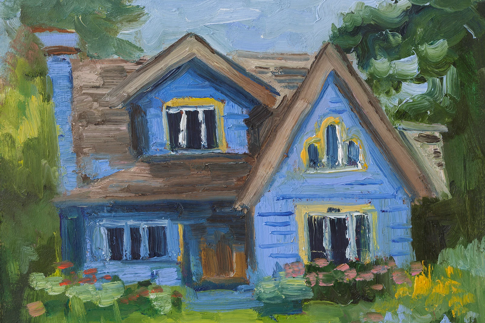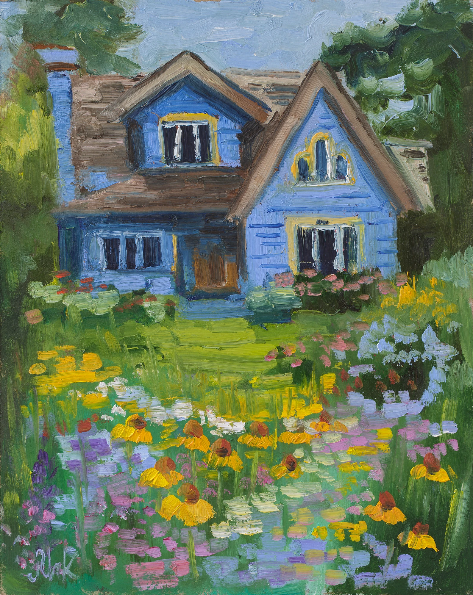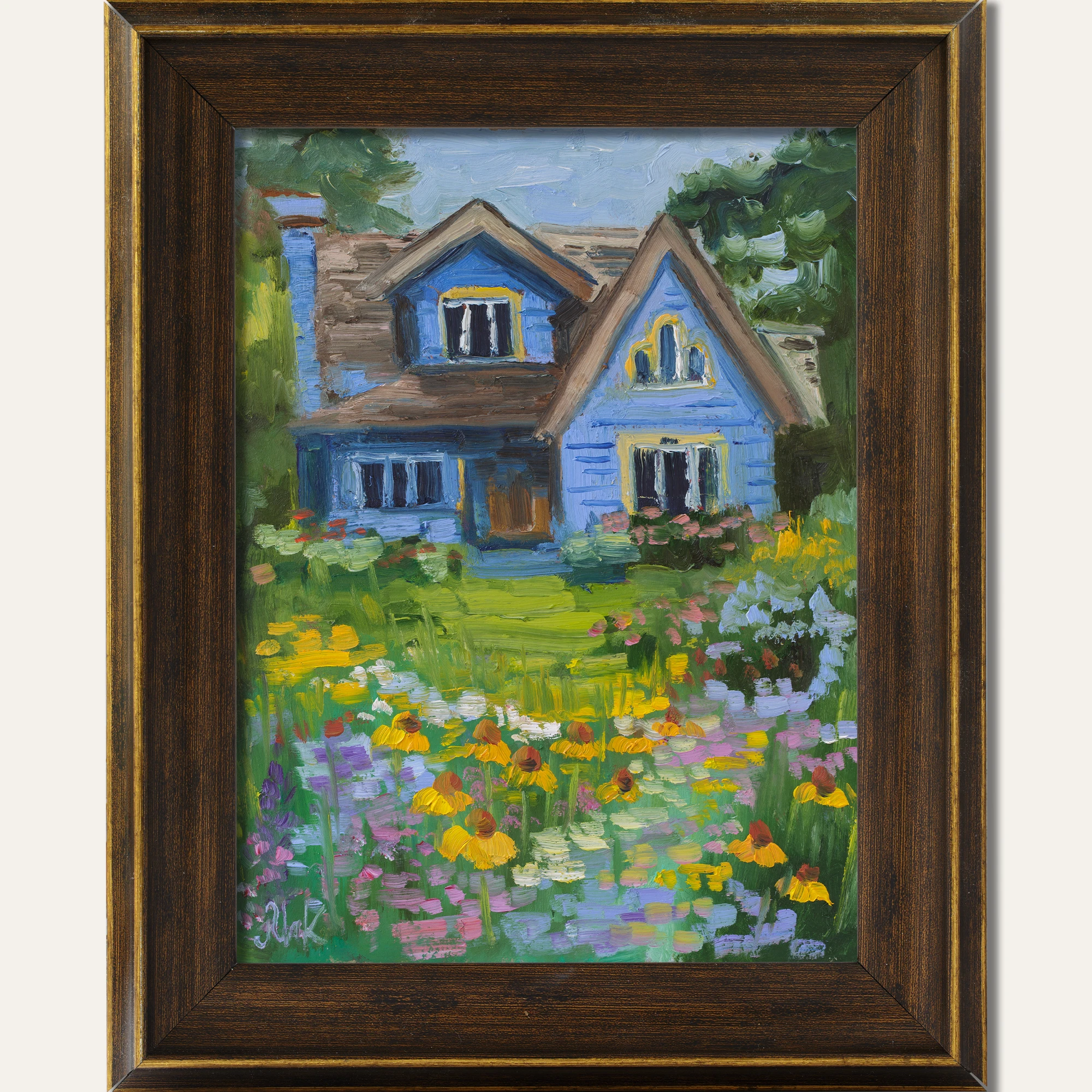 Be the first to review “Blue House Painting Framed Summer Garden Oil Original Wall Art Landscape Artwork”