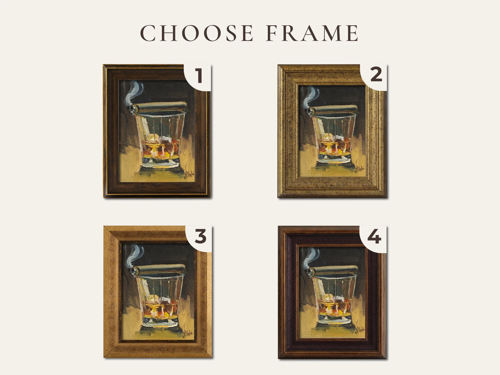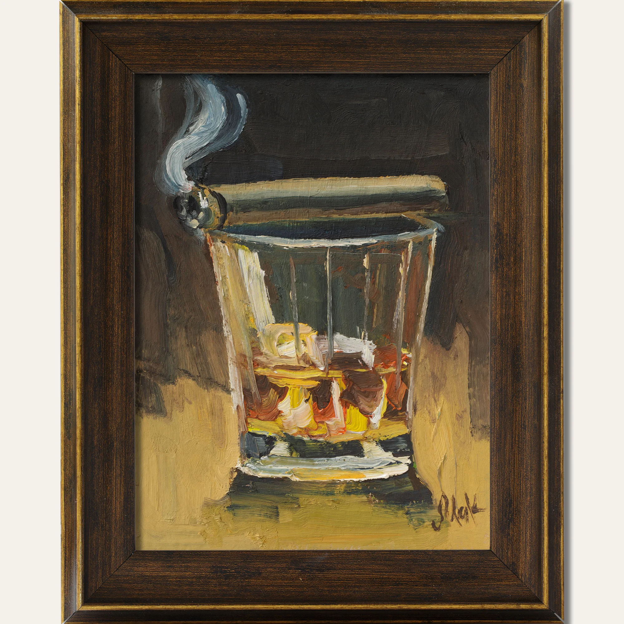 Be the first to review “Bourbon Oil Painting Framed Cigar Original Wall Art Whiskey Glass Cocktail Drink Bar”