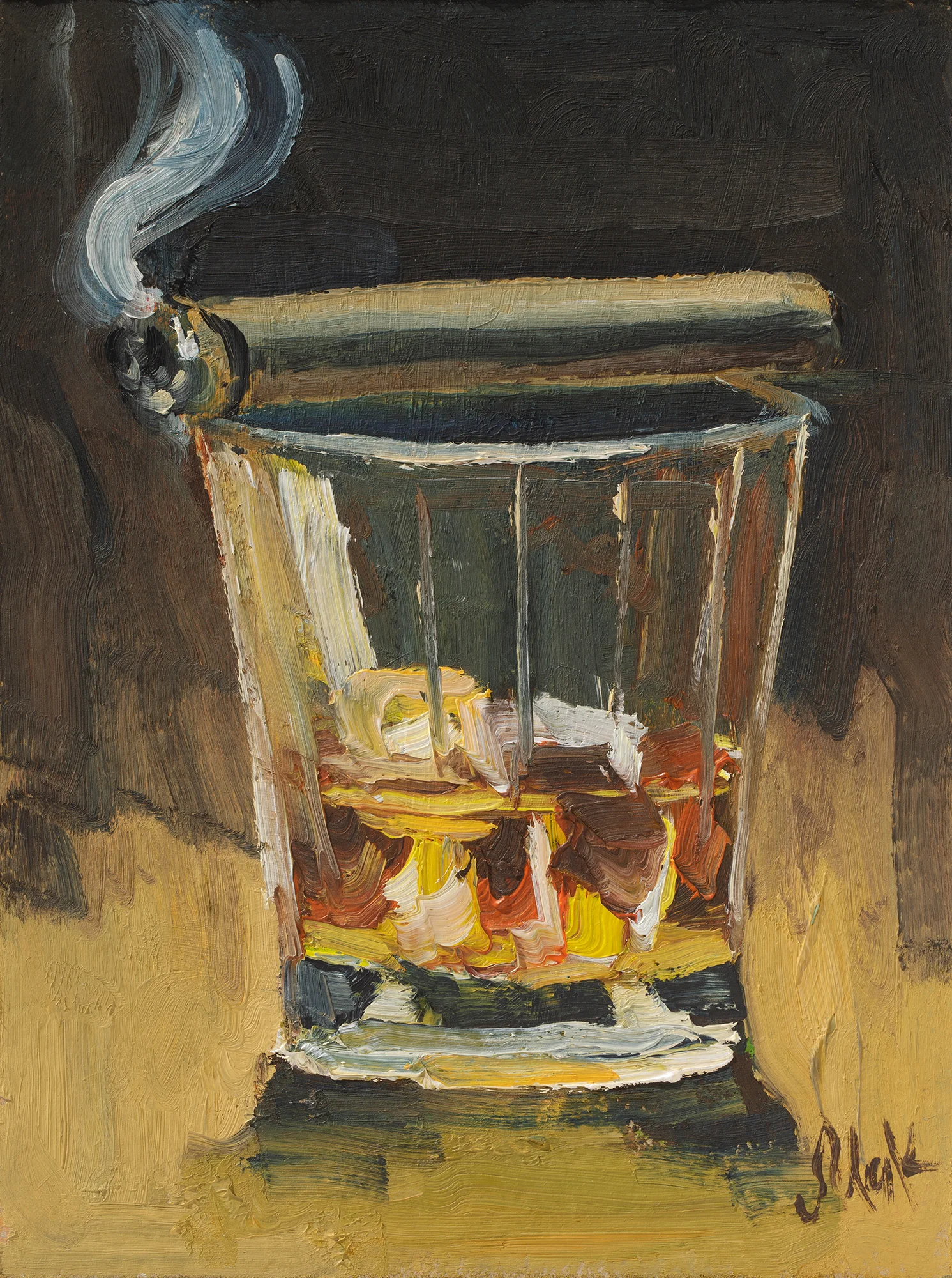 Bourbon Oil Painting Framed Cigar Original Wall Art Whiskey Glass Cocktail Drink Bar