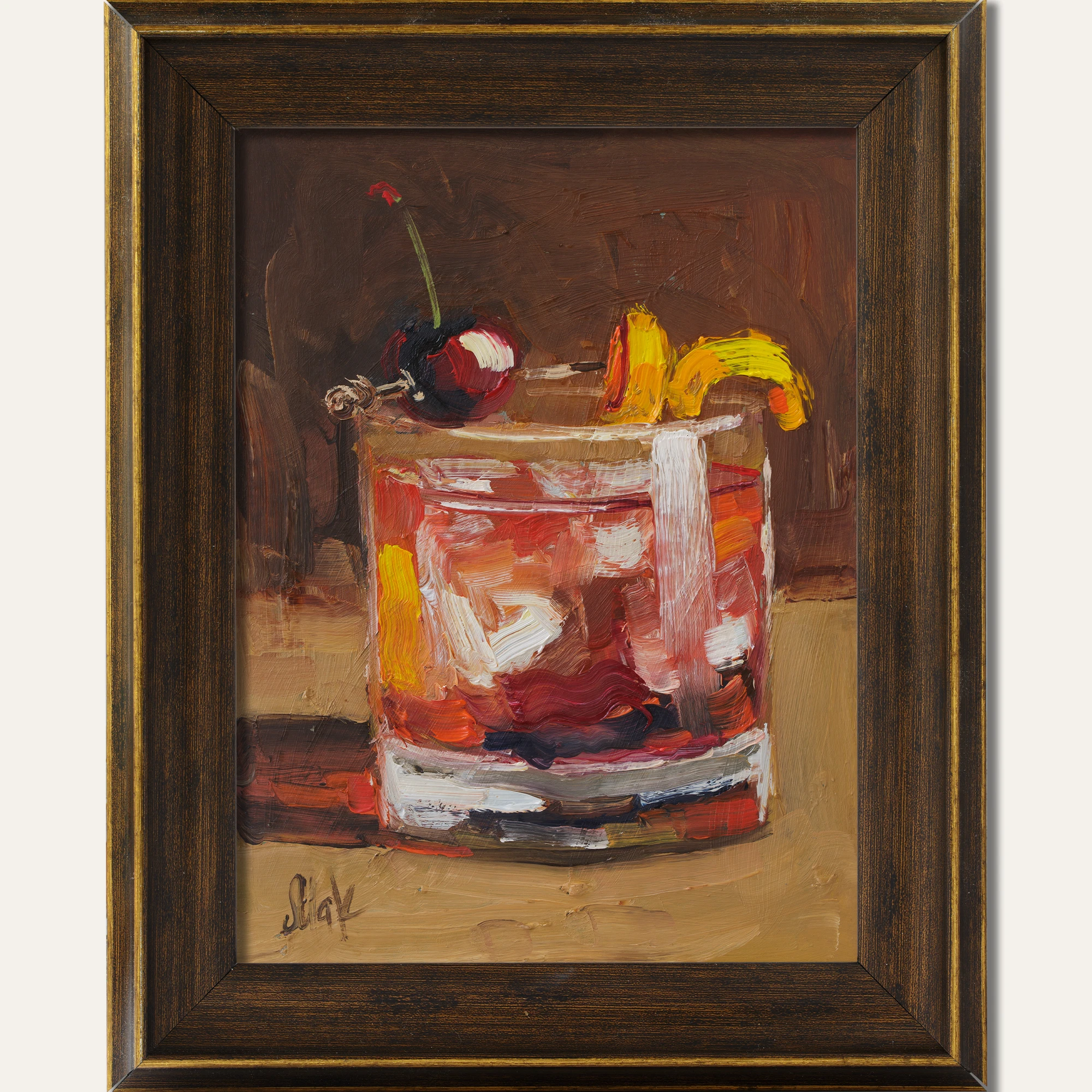 Bourbon Old Fashioned Cocktail Oil Painting FramedBourbon Old Fashioned Cocktail Oil Painting Framed Whiskey Drink Original Wall Art Bar Decor