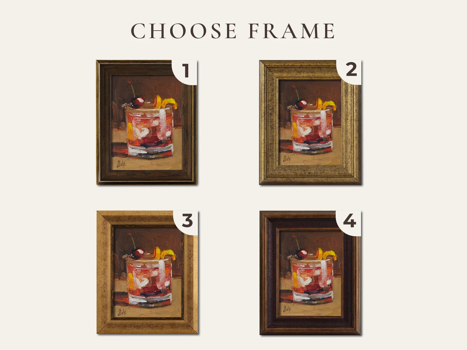 Bourbon Old Fashioned Cocktail Oil Painting Framed Whiskey Drink Original Wall Art Bar Decor