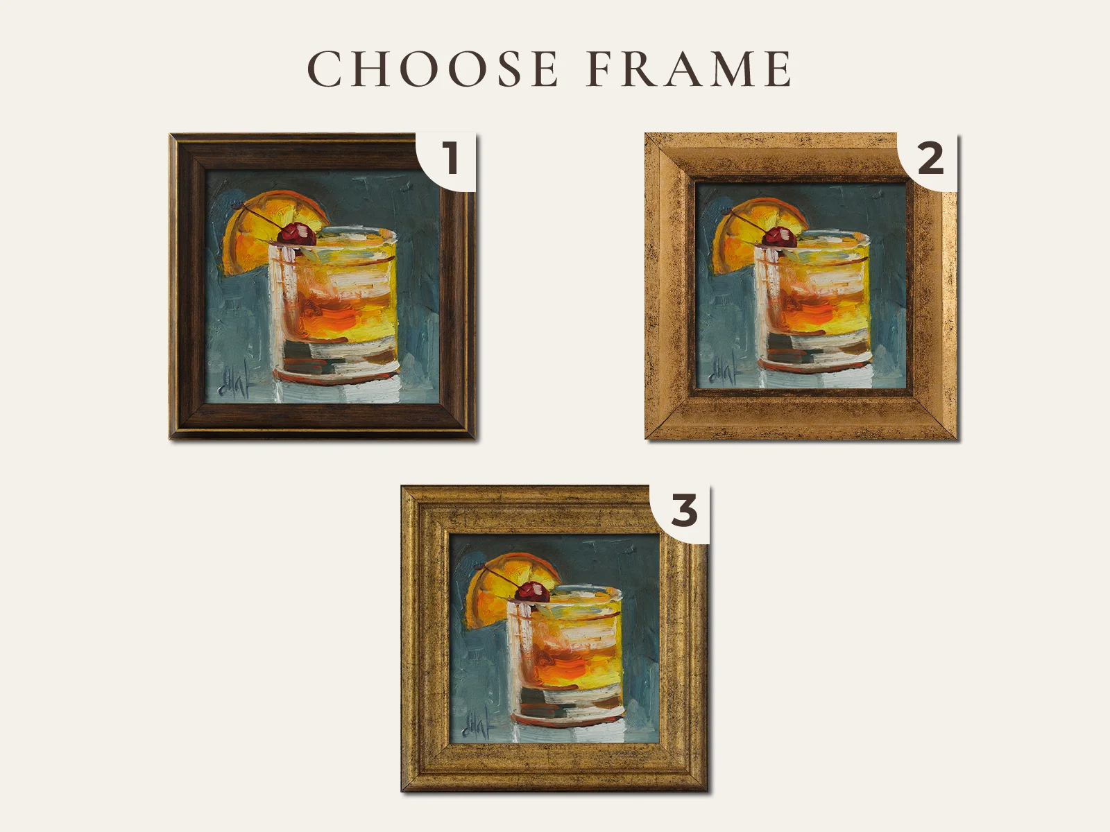 Bourbon Old Fashioned Cocktail Oil Painting Framed Whiskey Drink Original Wall Art Bar Decor