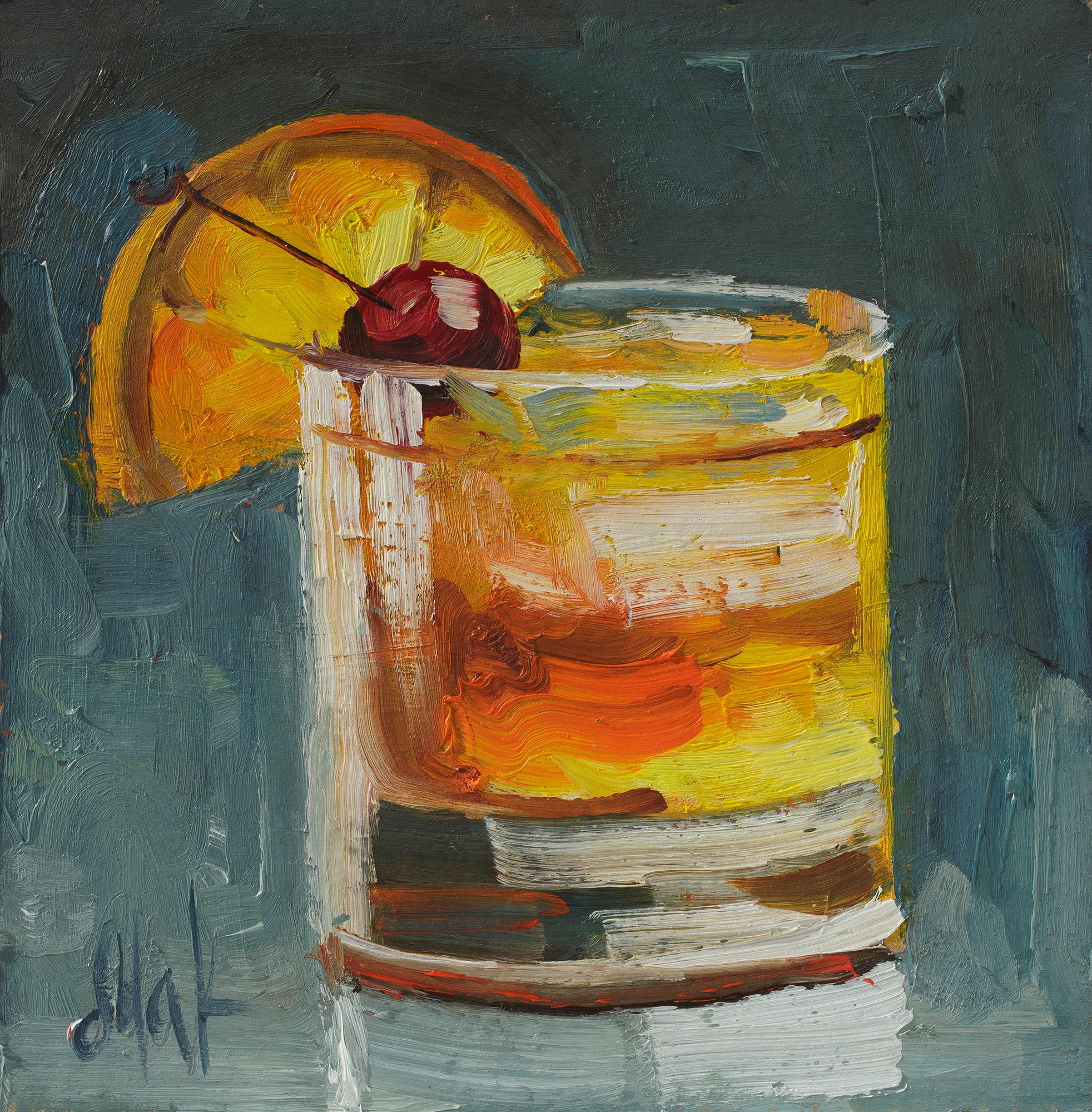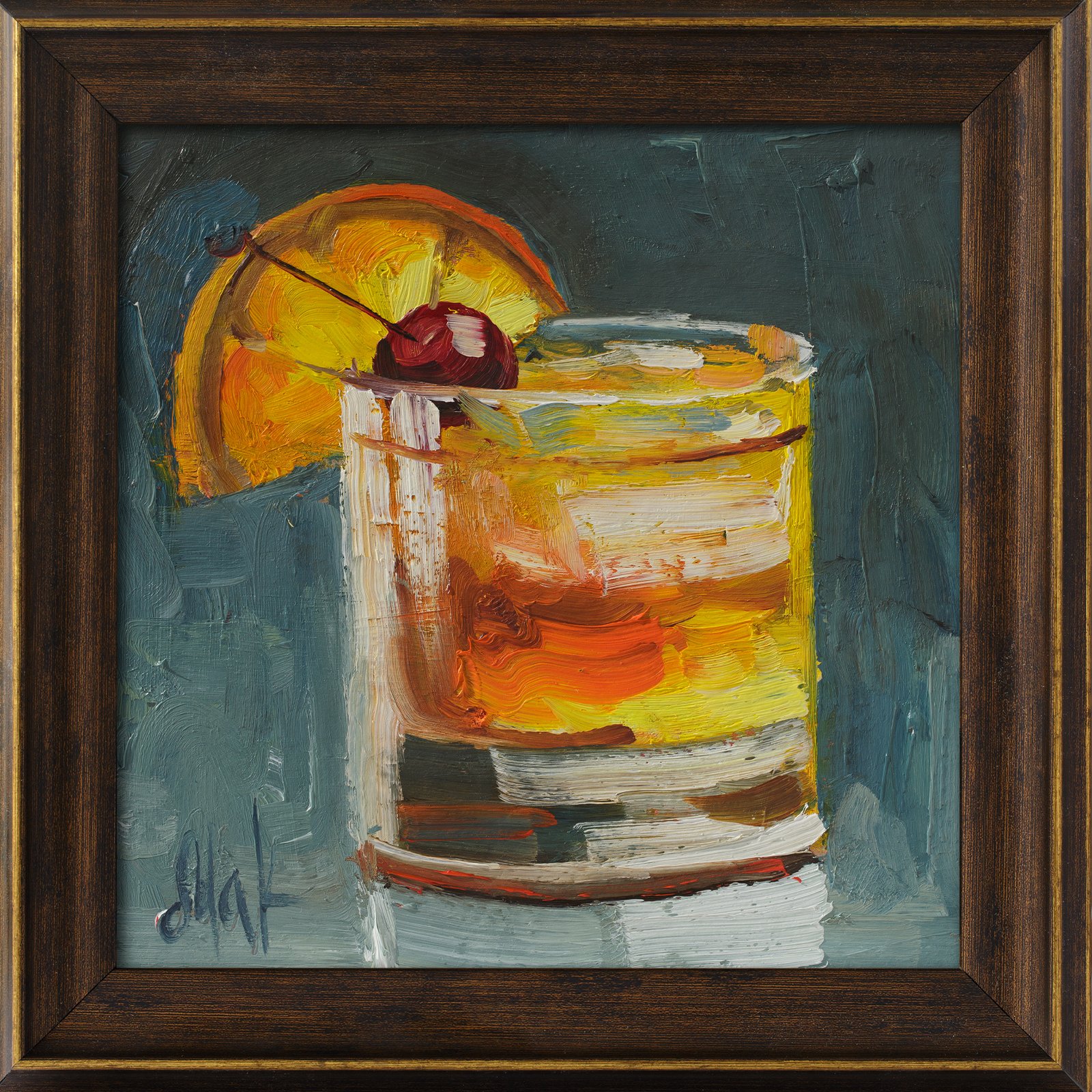Bourbon Old Fashioned Cocktail Oil Painting Framed Whiskey Drink Original Wall Art Bar DecorBourbon Old Fashioned Cocktail Oil Painting Framed Whiskey Drink Original Wall Art Bar Decor