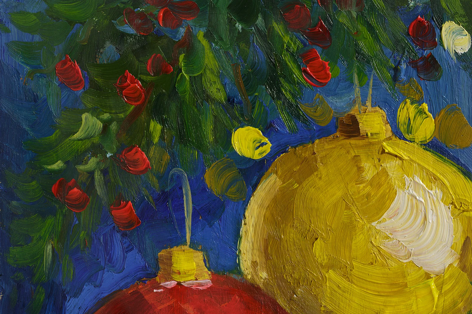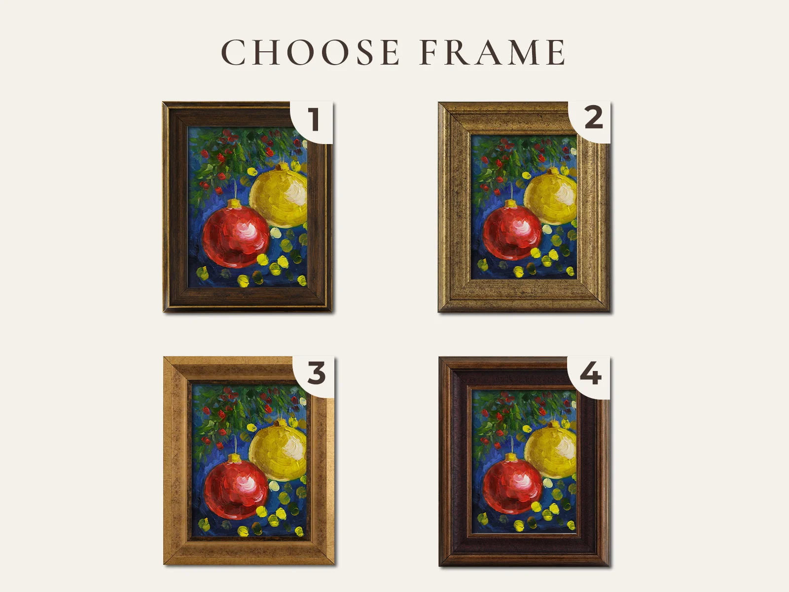 Christmas Ornaments Oil Painting Framed – Holiday Baubles Still Life – Festive Wall ArtChristmas Ornaments Oil Painting Framed – Holiday Baubles Still Life – Festive Wall Art