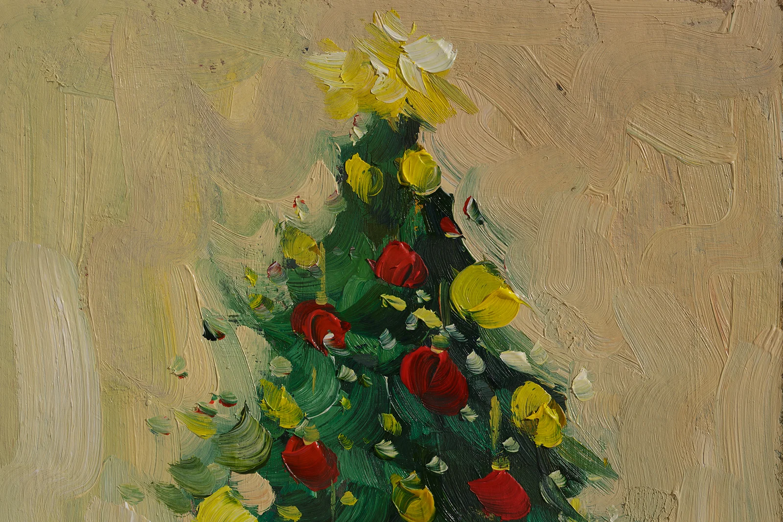 Christmas Tree Oil Painting FramedChristmas Tree Oil Painting Framed – Gifts Under Tree – Holiday Home Decor Artwork