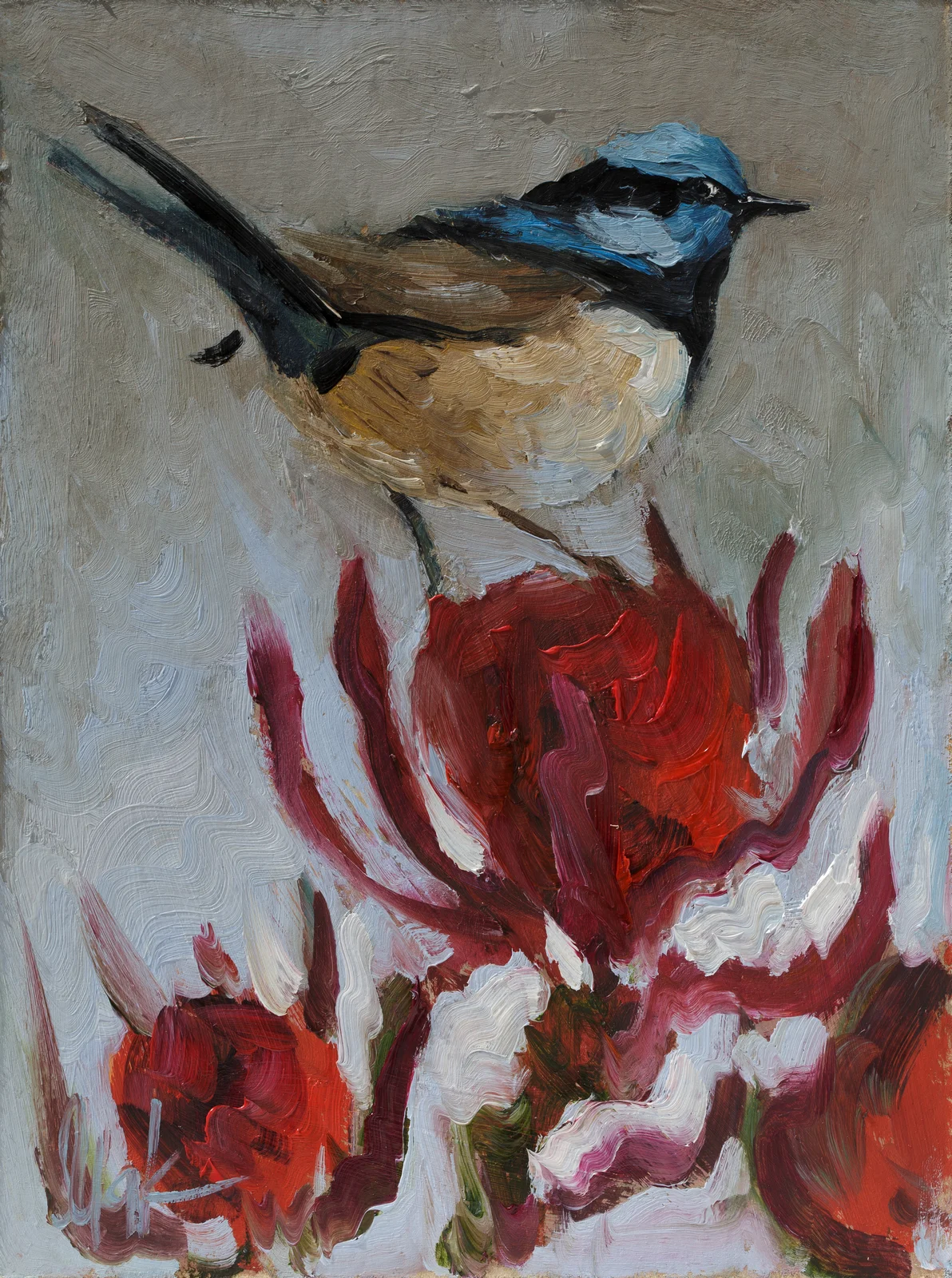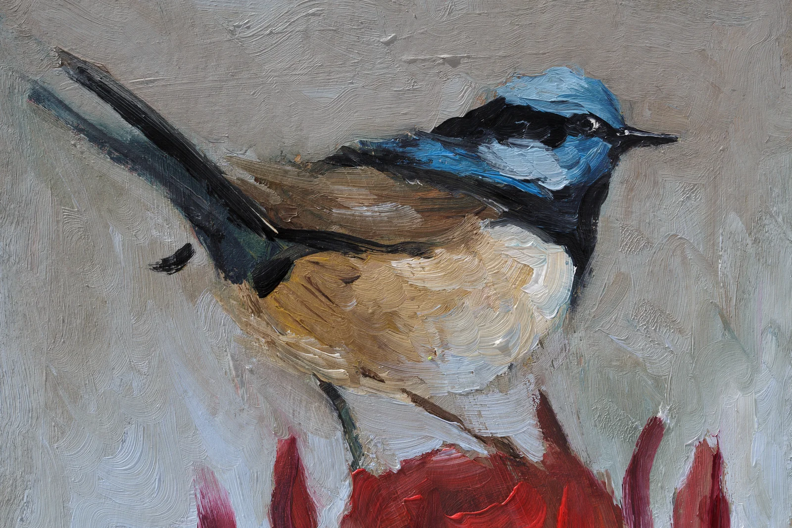 Fairy-wren Oil Painting Framed Small Bird Artwork Original Wall ArtFairy-wren Oil Painting Framed Small Bird Artwork Original Wall Art