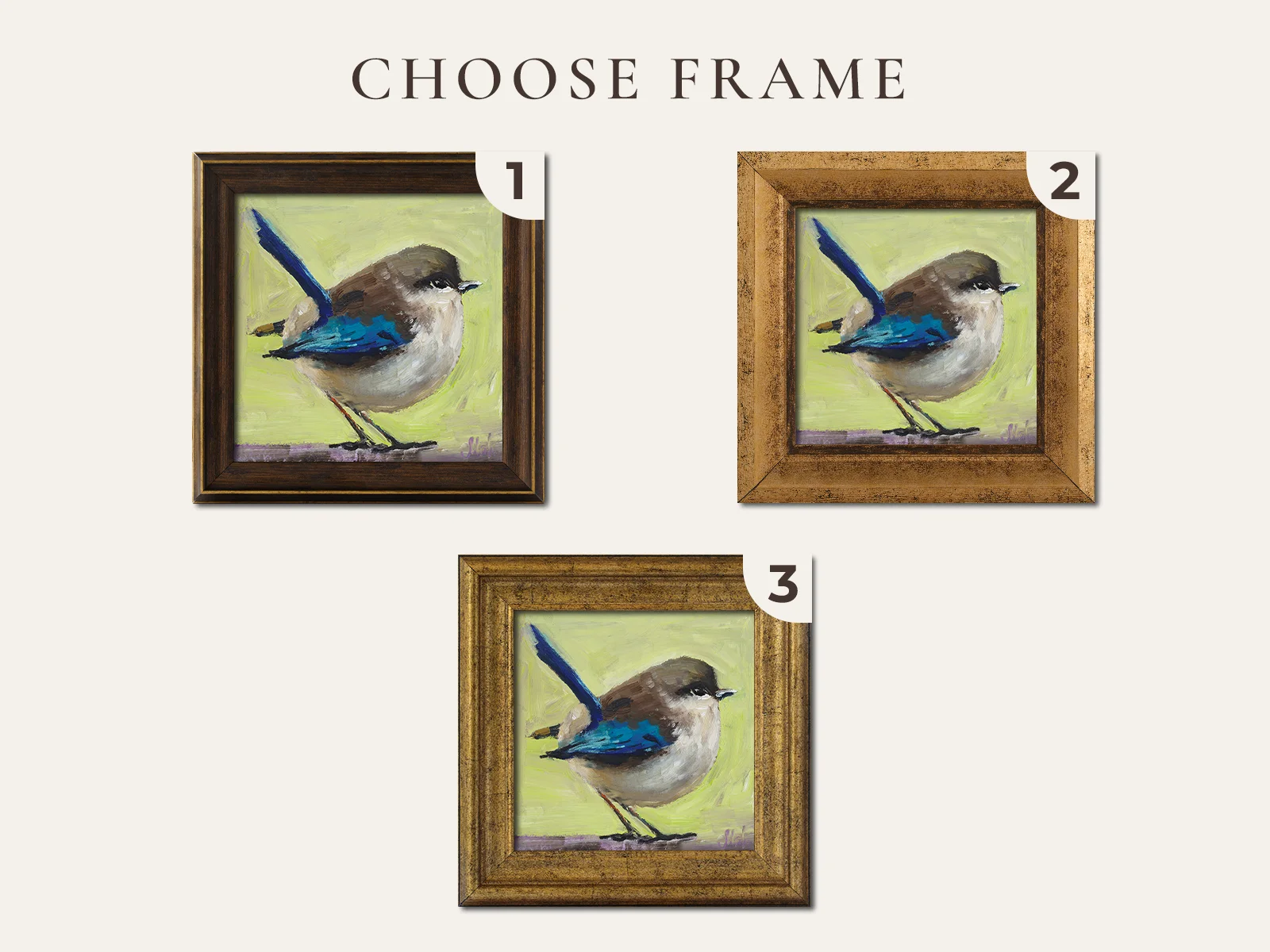 Fairy-wren Oil Painting FramedFairy-wren Oil Painting: Original Small Bird Wall Art