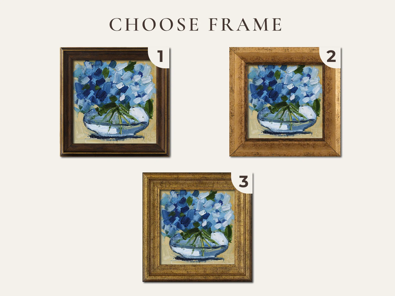 Framed Hydrangea Oil Painting: Small Floral Still Life, 6x6''Framed Hydrangea Oil Painting: Small Floral Still Life, 6×6”