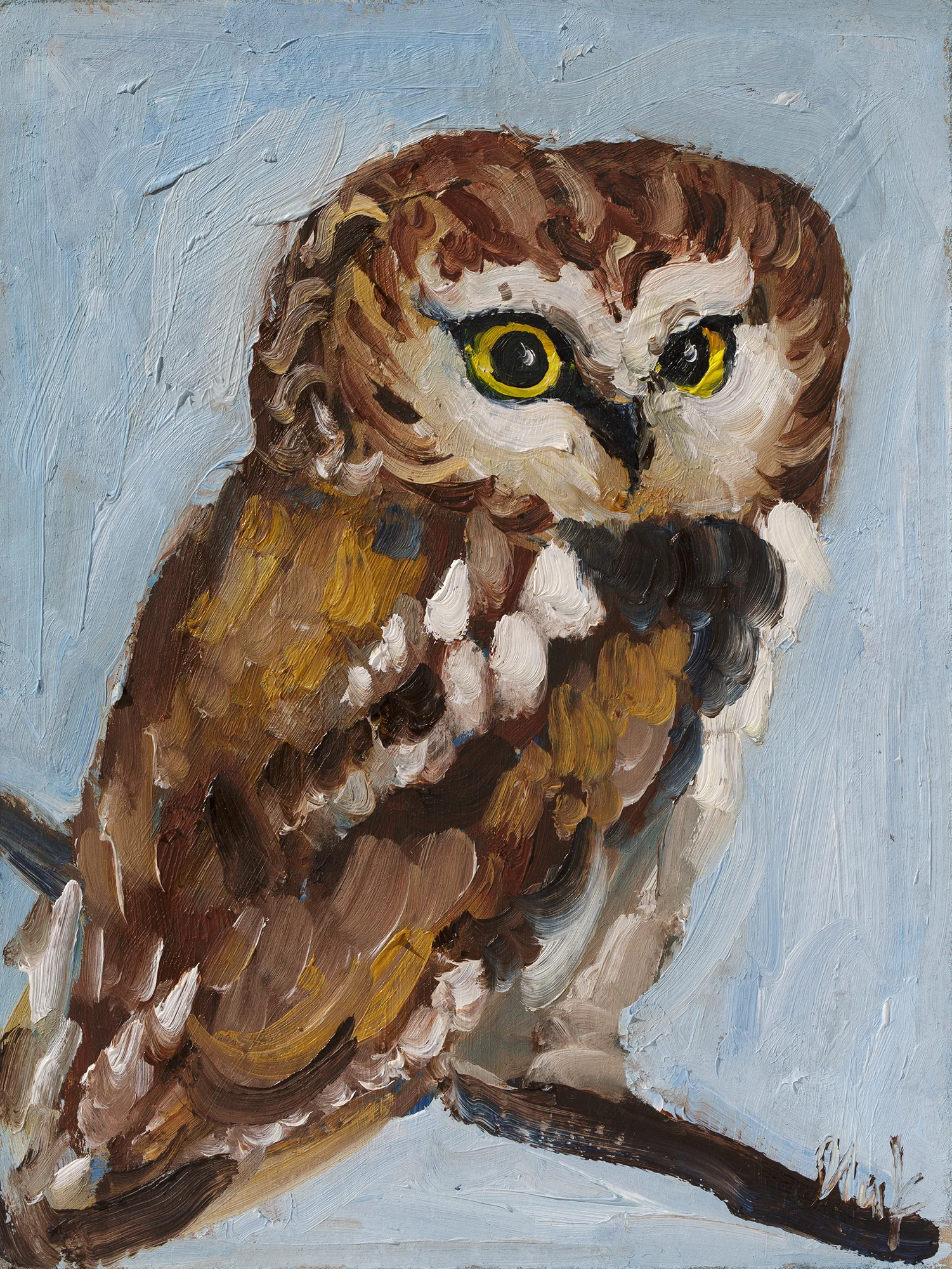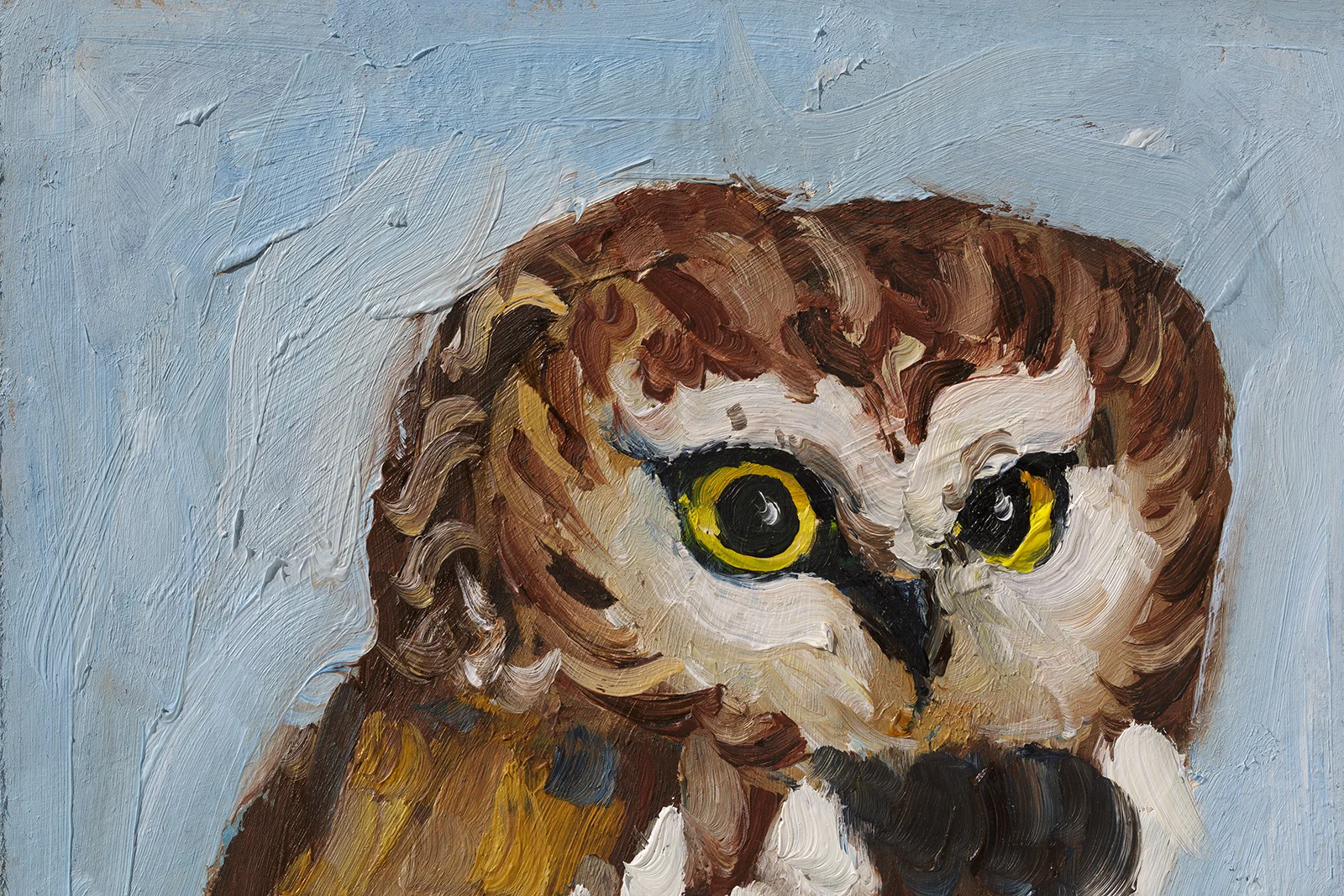 Framed Owl Oil Painting Framed Original Bird Art, Northern Saw-whet, 8×6”
