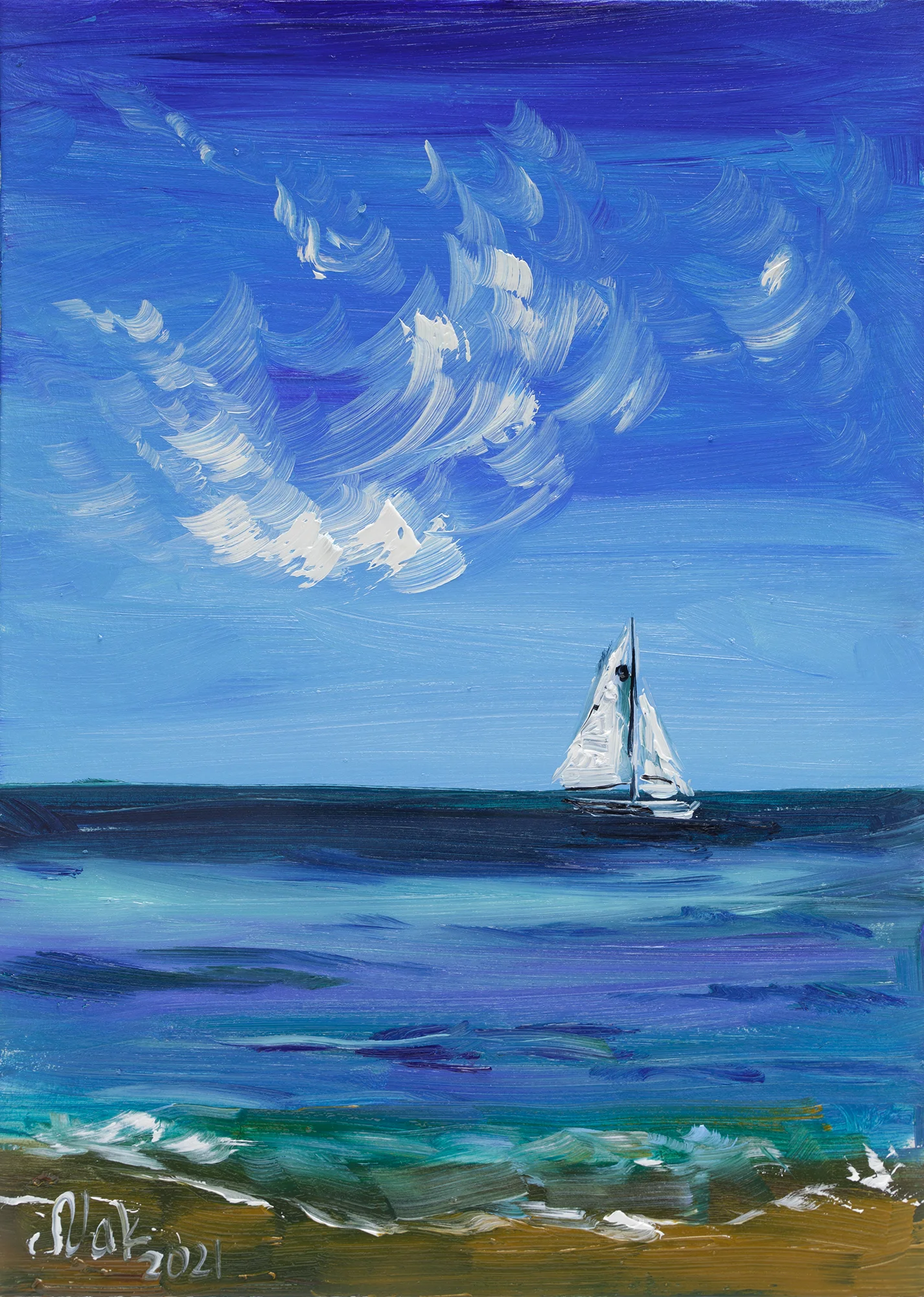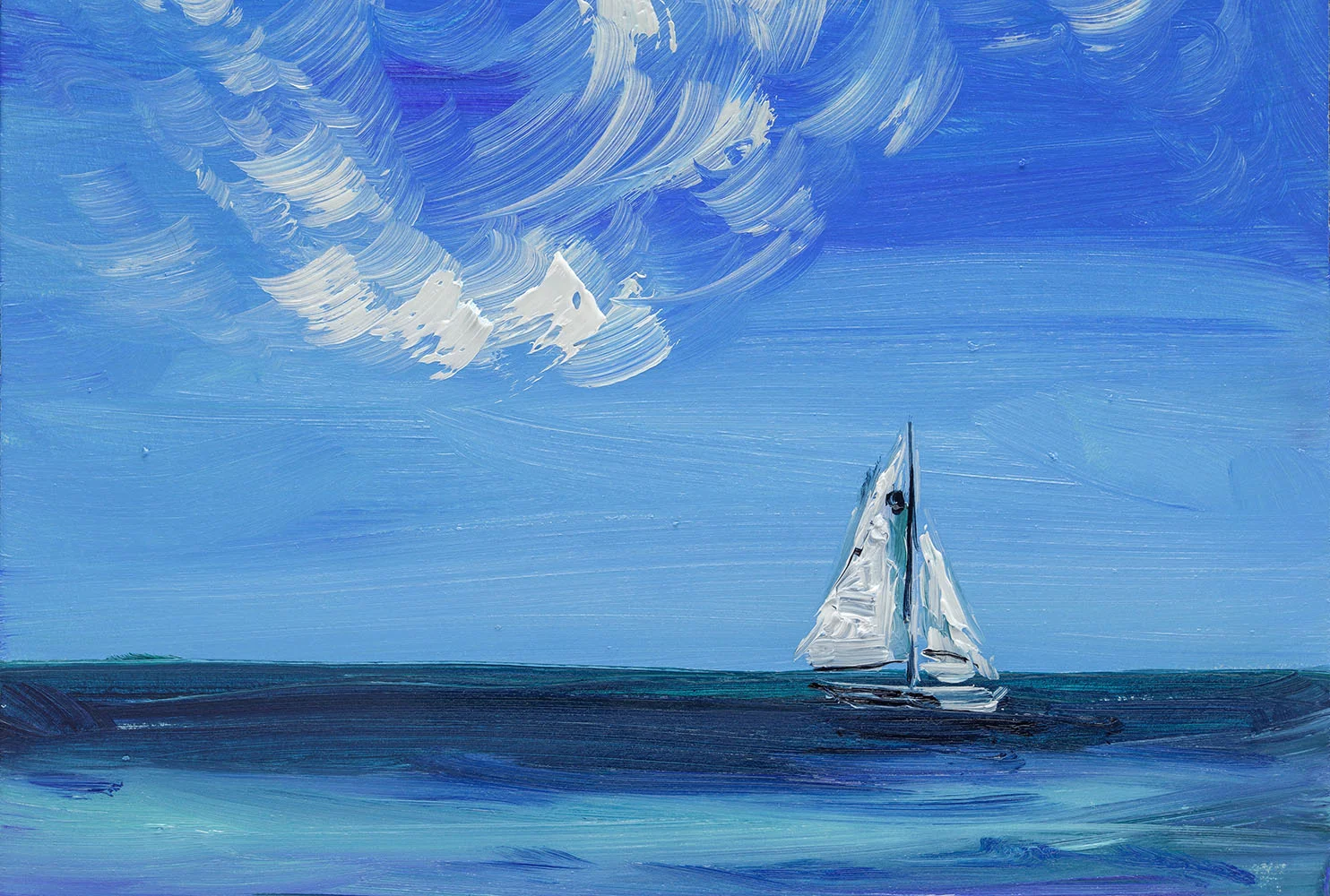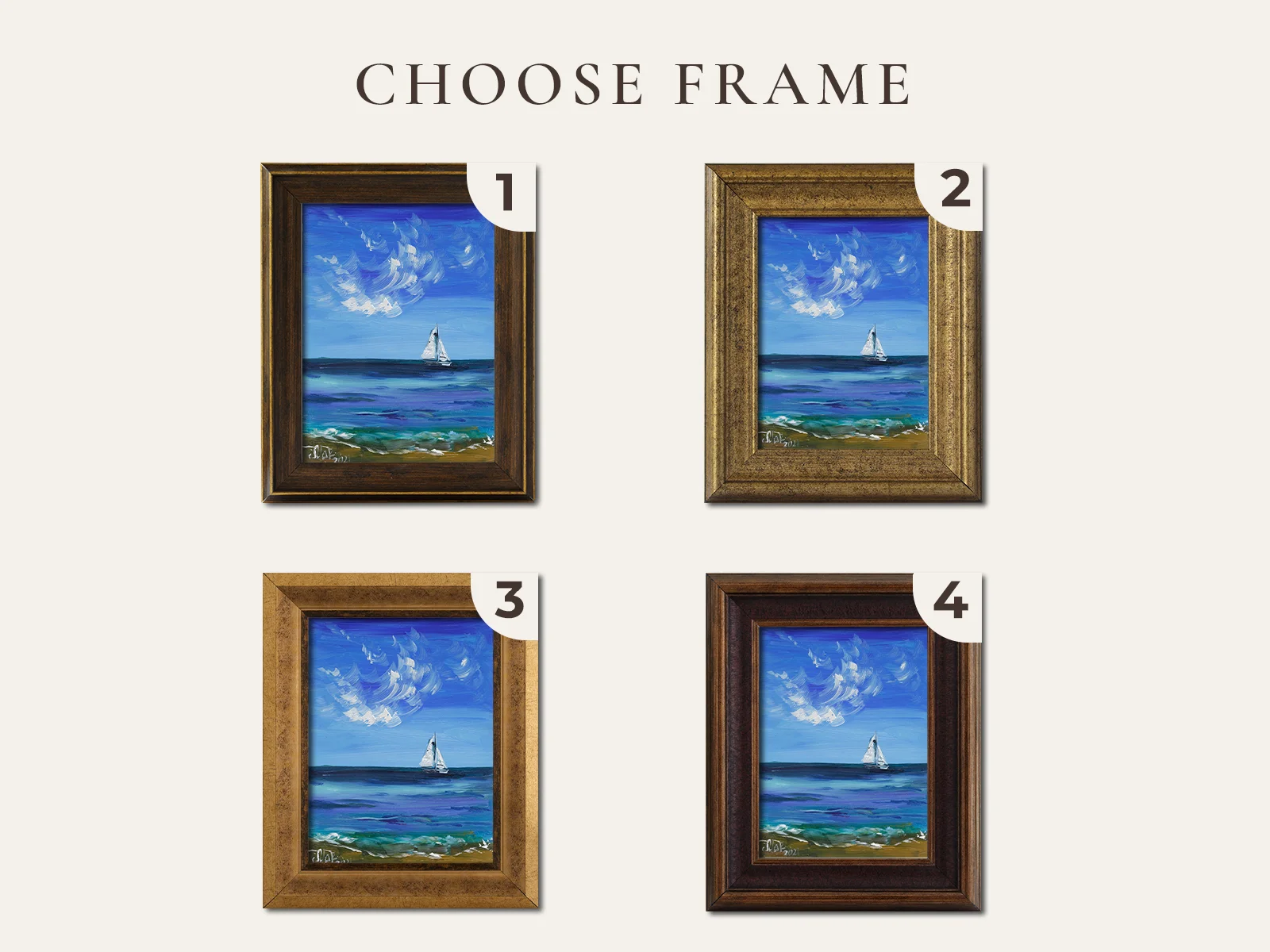 Framed Seascape Oil Painting: Puerto Rico Sailboat Art 8×6”