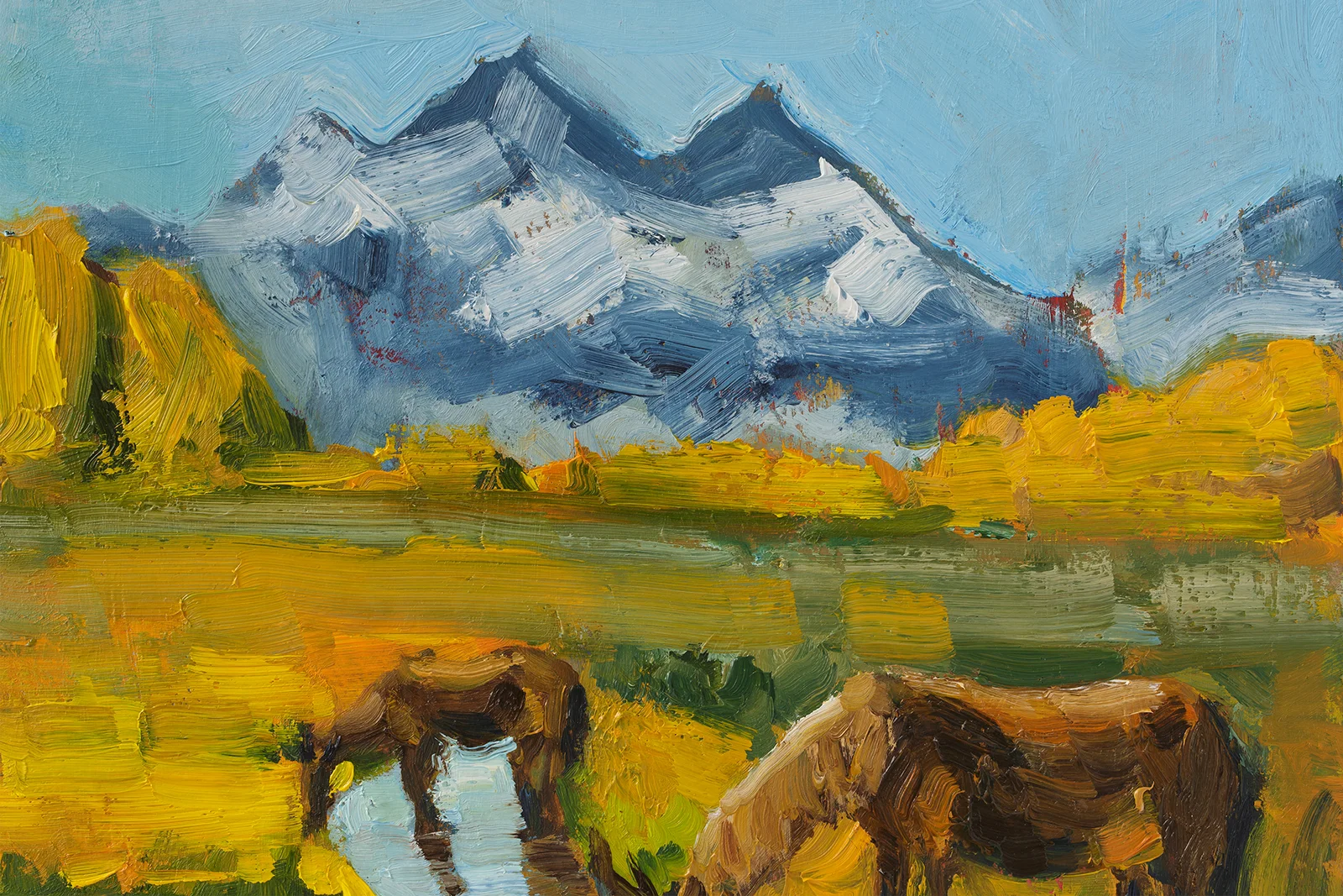 Grand Teton Oil Painting FramedGrand Teton Oil Painting: Autumn Mountains Framed Wall Art
