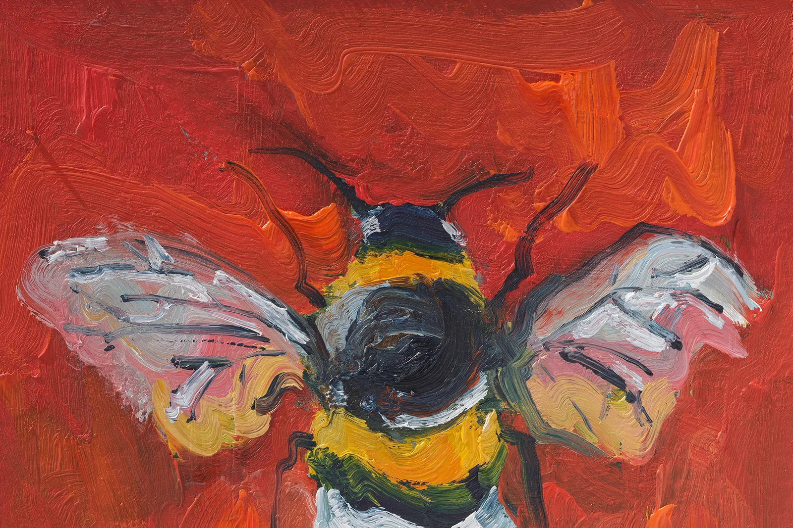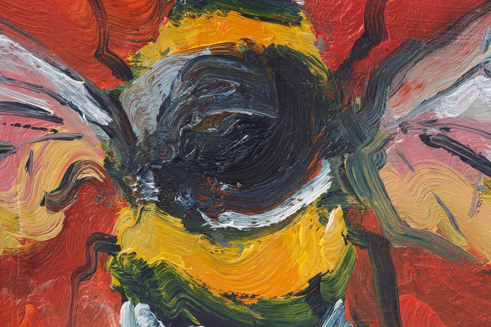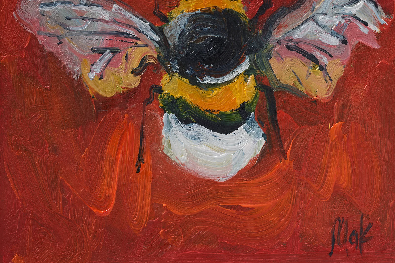 Honey Bee Oil Painting FramedHoney Bee Oil Painting: Framed Bumblebee on Flower, 6×6” Original Art