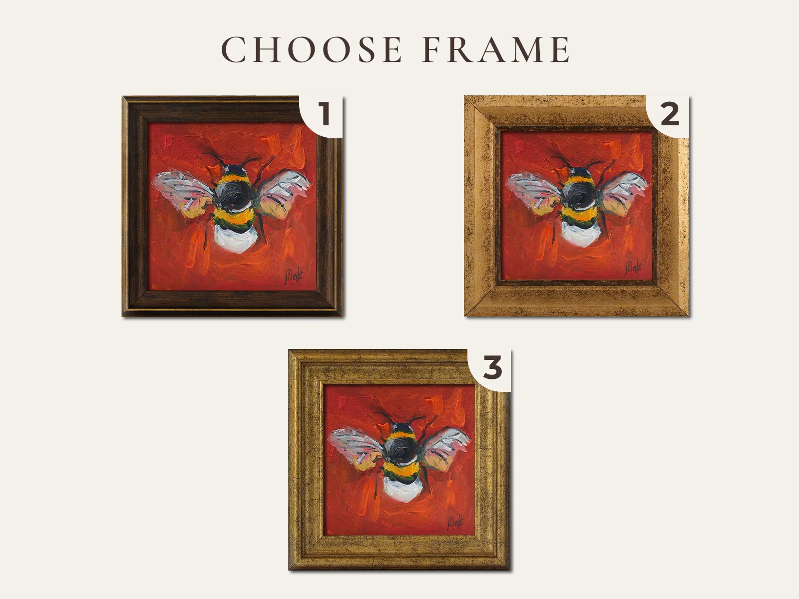 Honey Bee Oil Painting: Framed Bumblebee on Flower, 6×6” Original Art