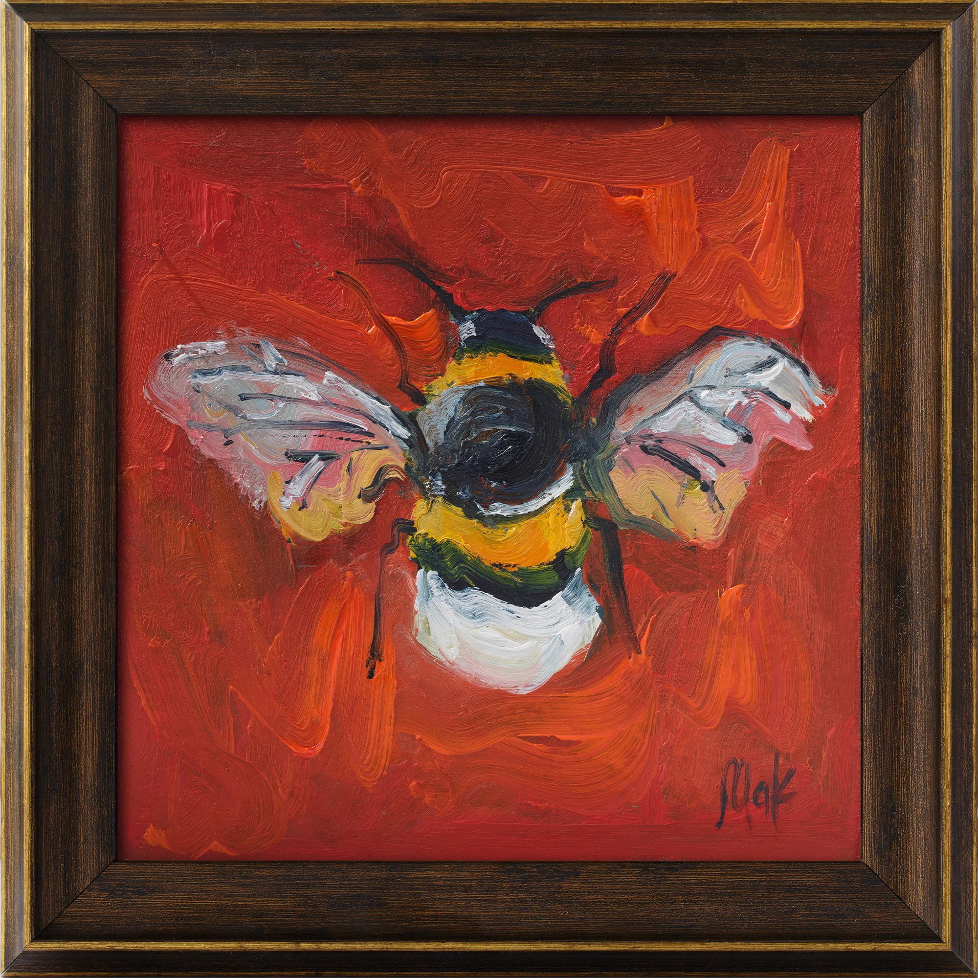 Be the first to review “Honey Bee Oil Painting: Framed Bumblebee on Flower, 6×6” Original Art”