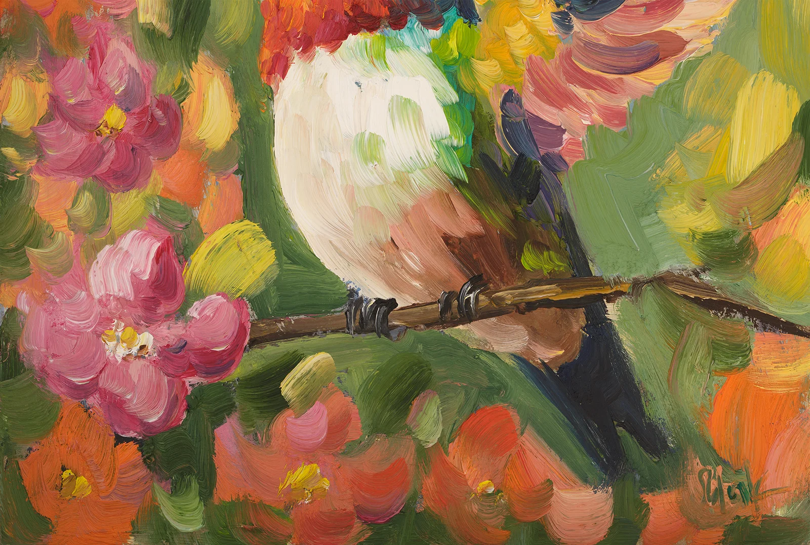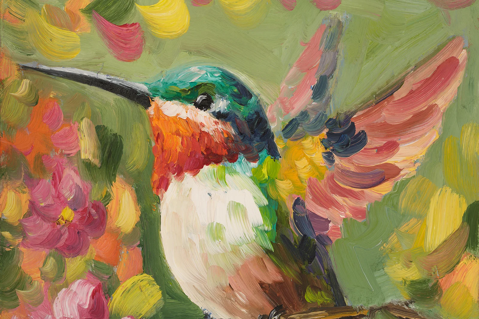 Hummingbird Oil Painting Framed Bird Original Wall Art Flowers Artwork Floral DecorHummingbird Oil Painting Framed Bird Original Wall Art Flowers Artwork Floral Decor