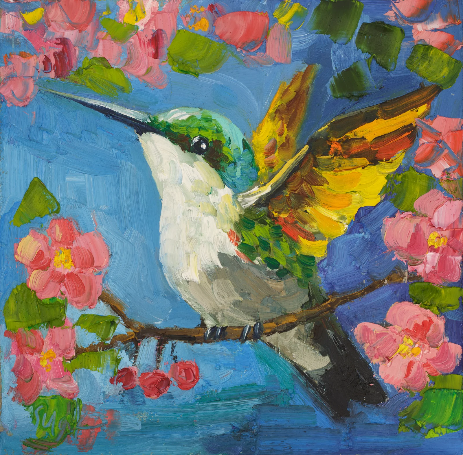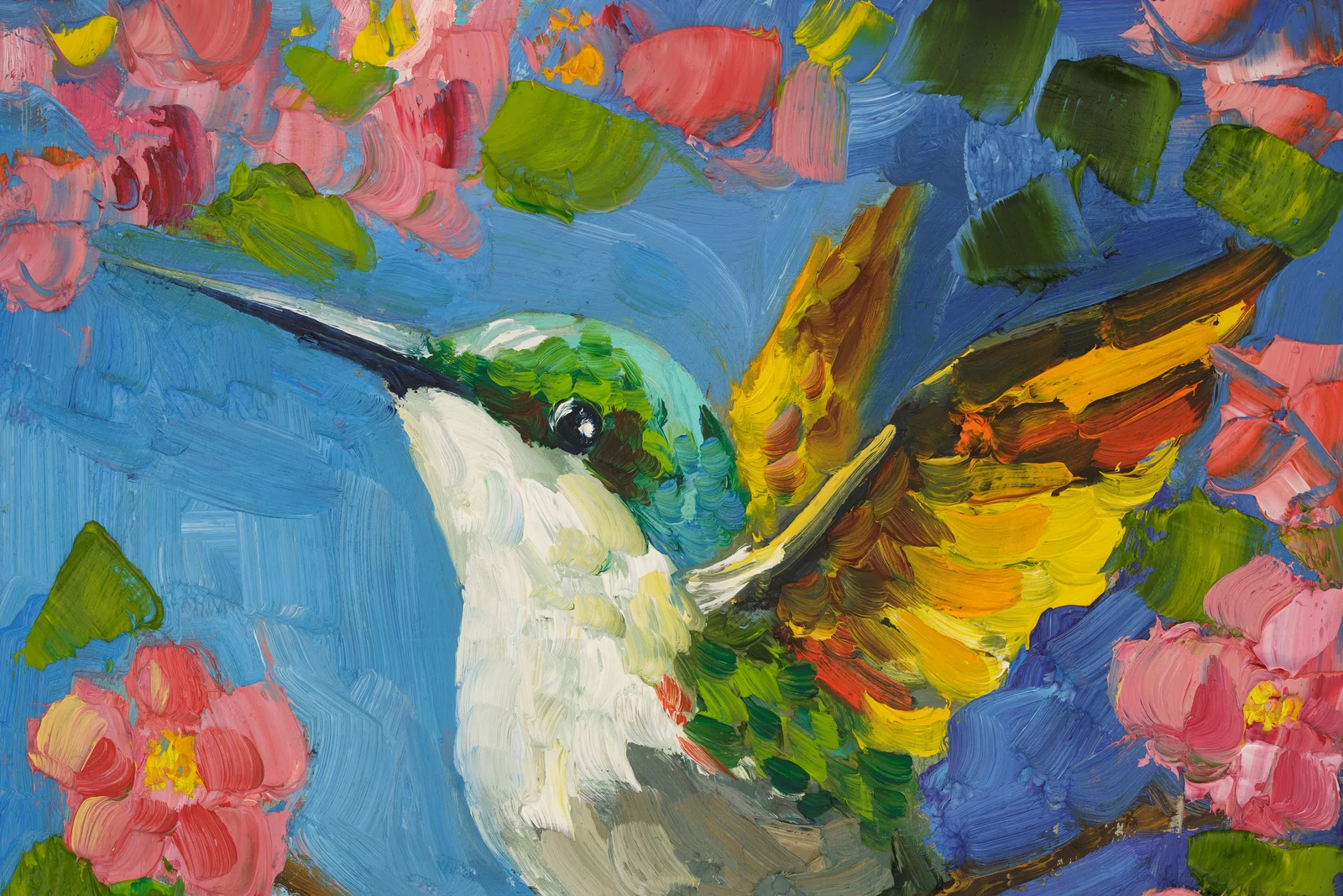 Hummingbird Oil Painting Framed Bird Original Wall Art Flowers ArtworkHummingbird Oil Painting Framed Bird Original Wall Art Flowers Artwork