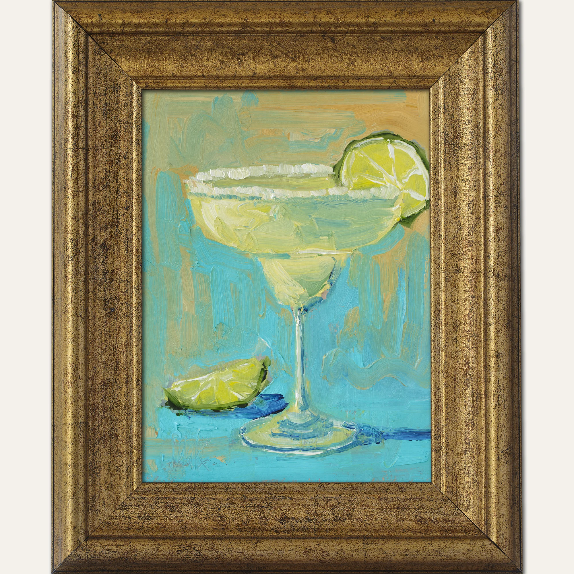 Margarita Oil Painting Framed Still Life Original Wall Art Lime Cocktail Drink Alcohol Decor