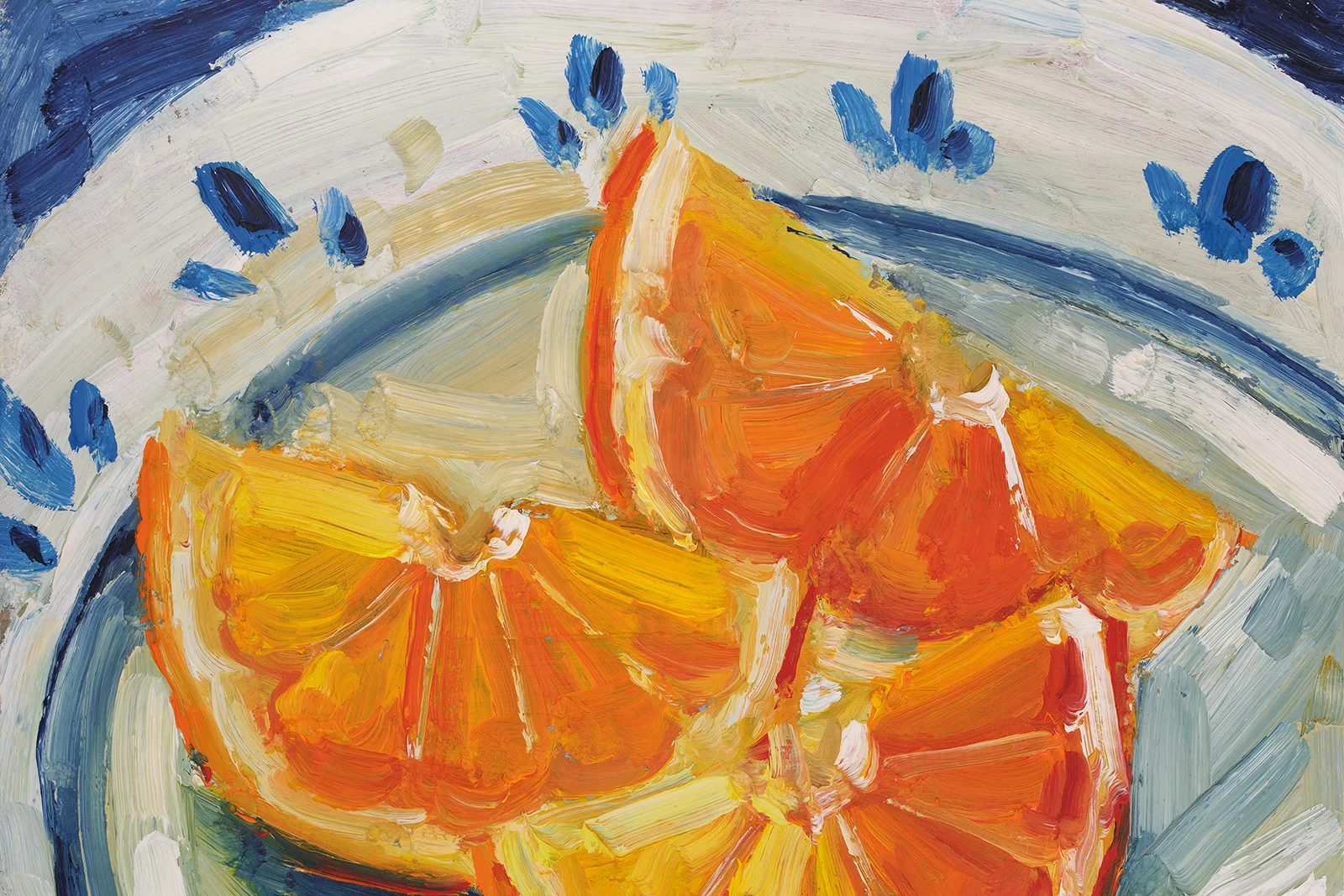 Orange Slices Original Oil Painting Fruit Still Life Art Framed Artwork Kitchen Decor