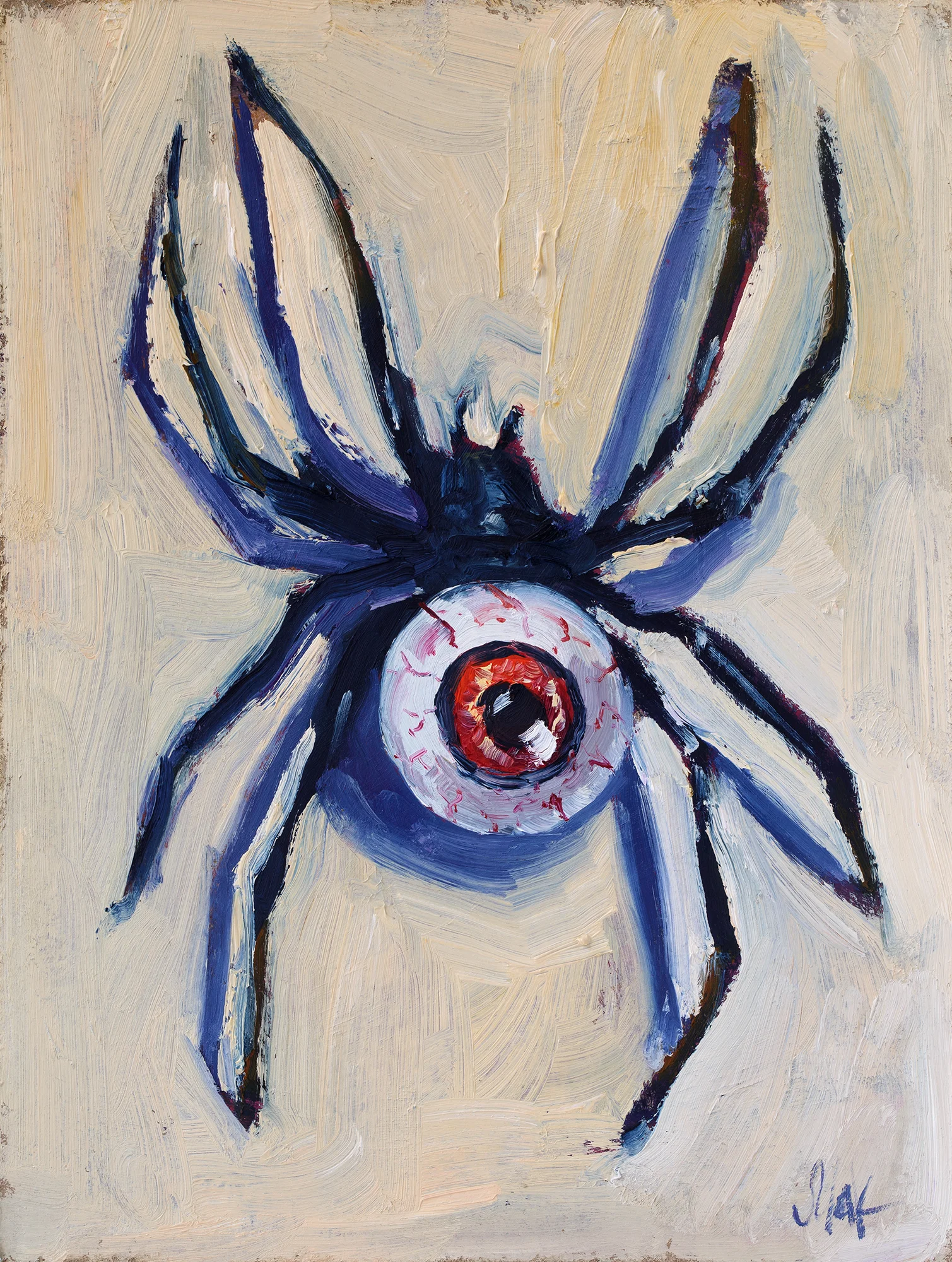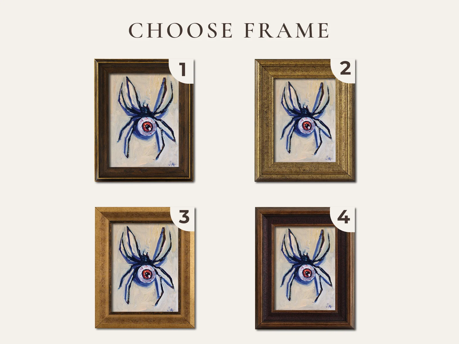Original Halloween Spider Oil Painting FramedOriginal Halloween Spider Oil Painting: Spooky Eyeball Wall Art Framed