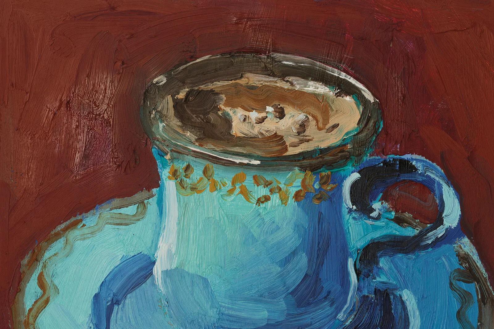 Original Oil Painting Framed Coffee Cup Still Life, Kitchen Wall Art 6×6”