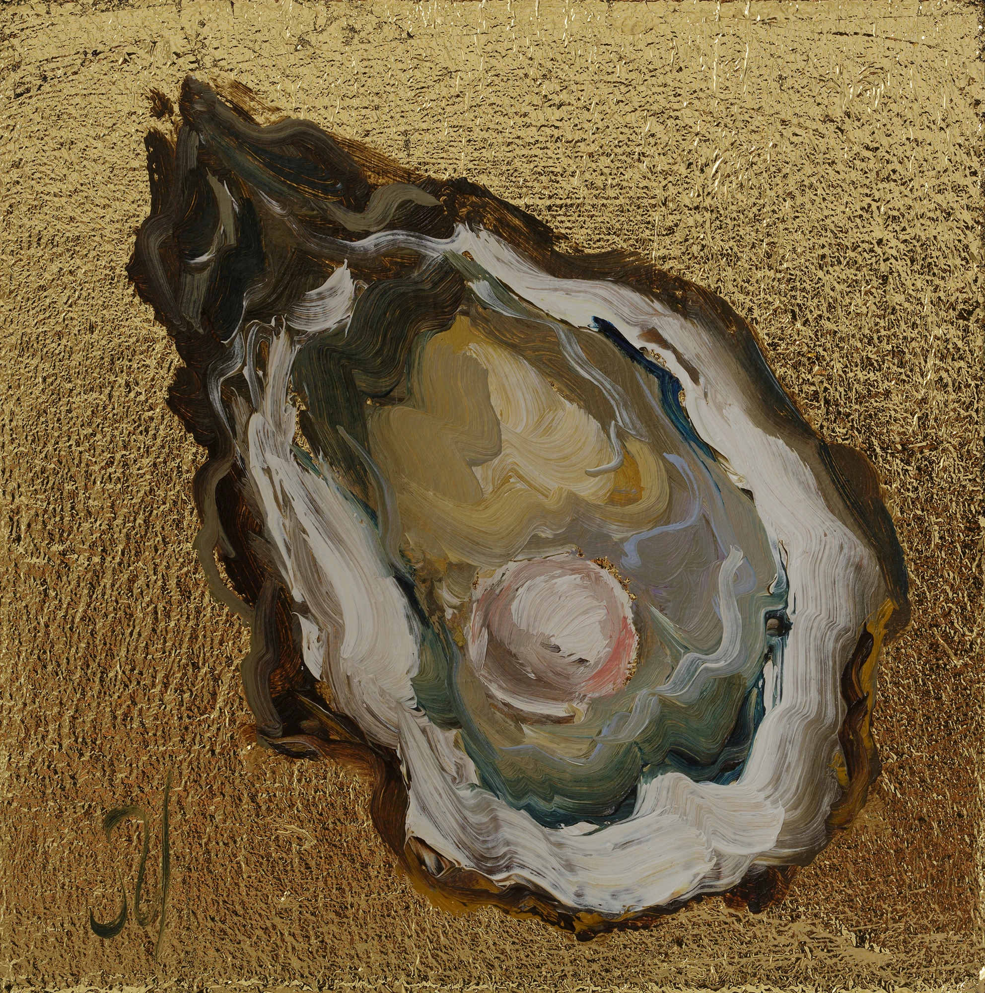 Oyster Oil Painting Shell Framed Original Seashell Pearl Wall Art Small Tiny Artwork 4×4”