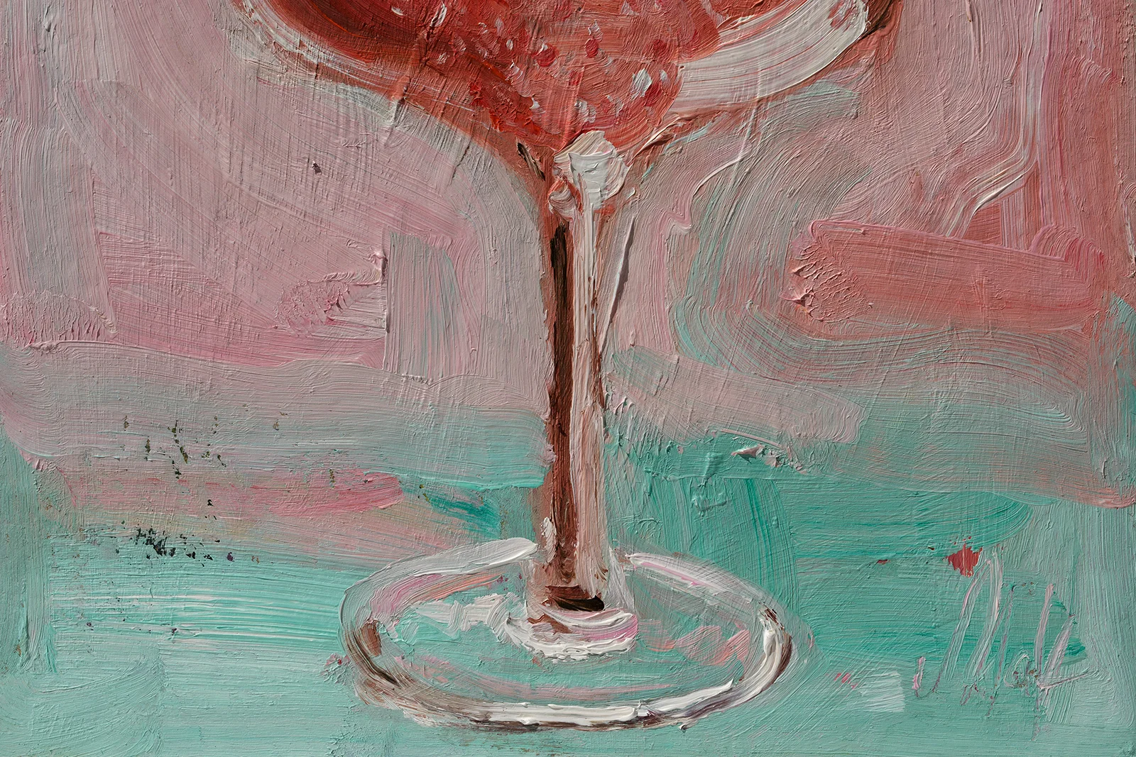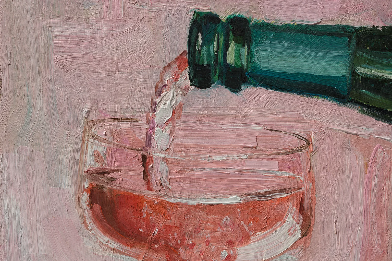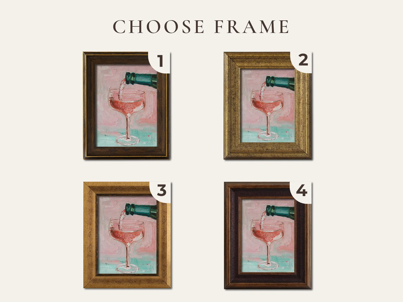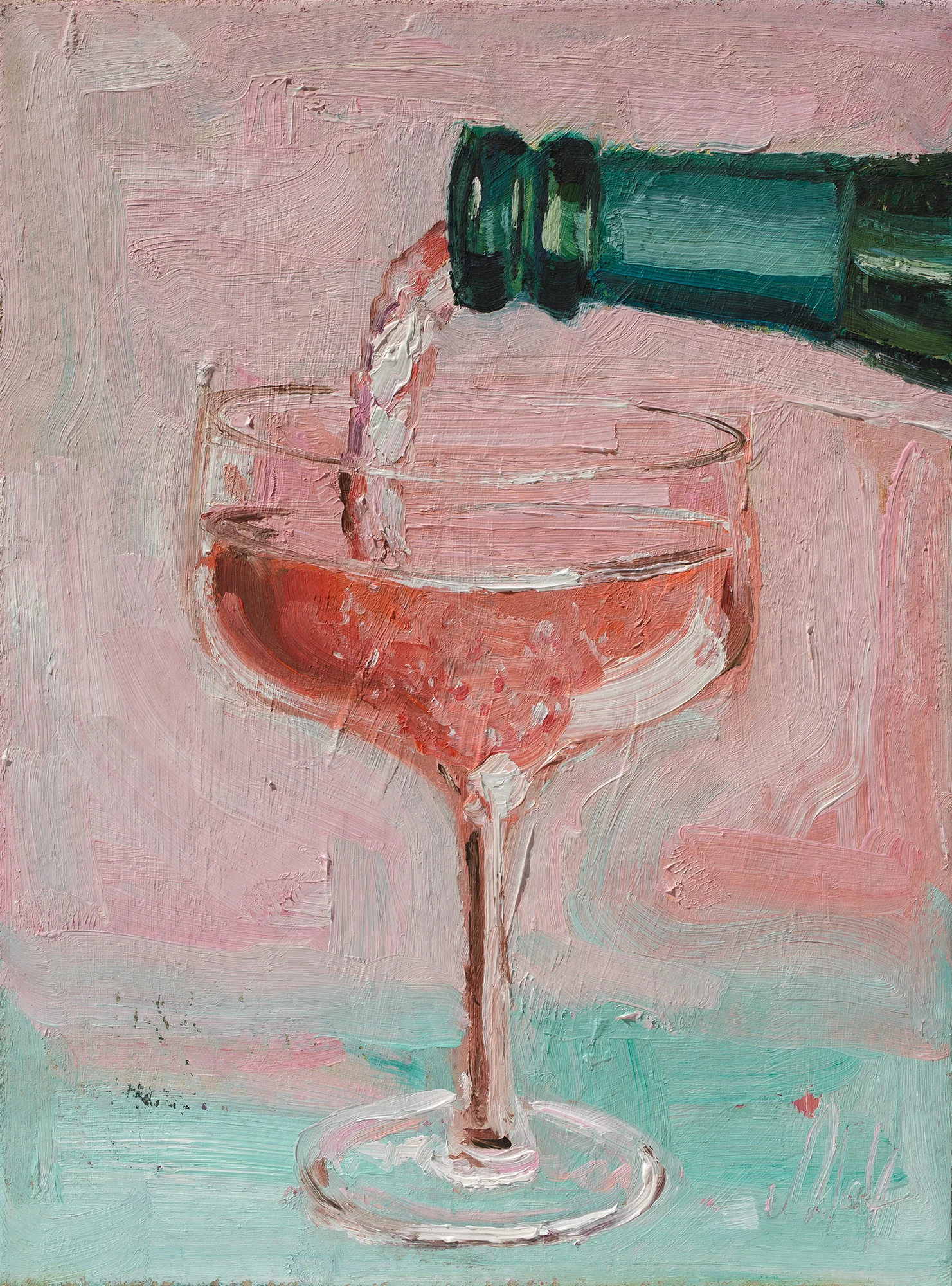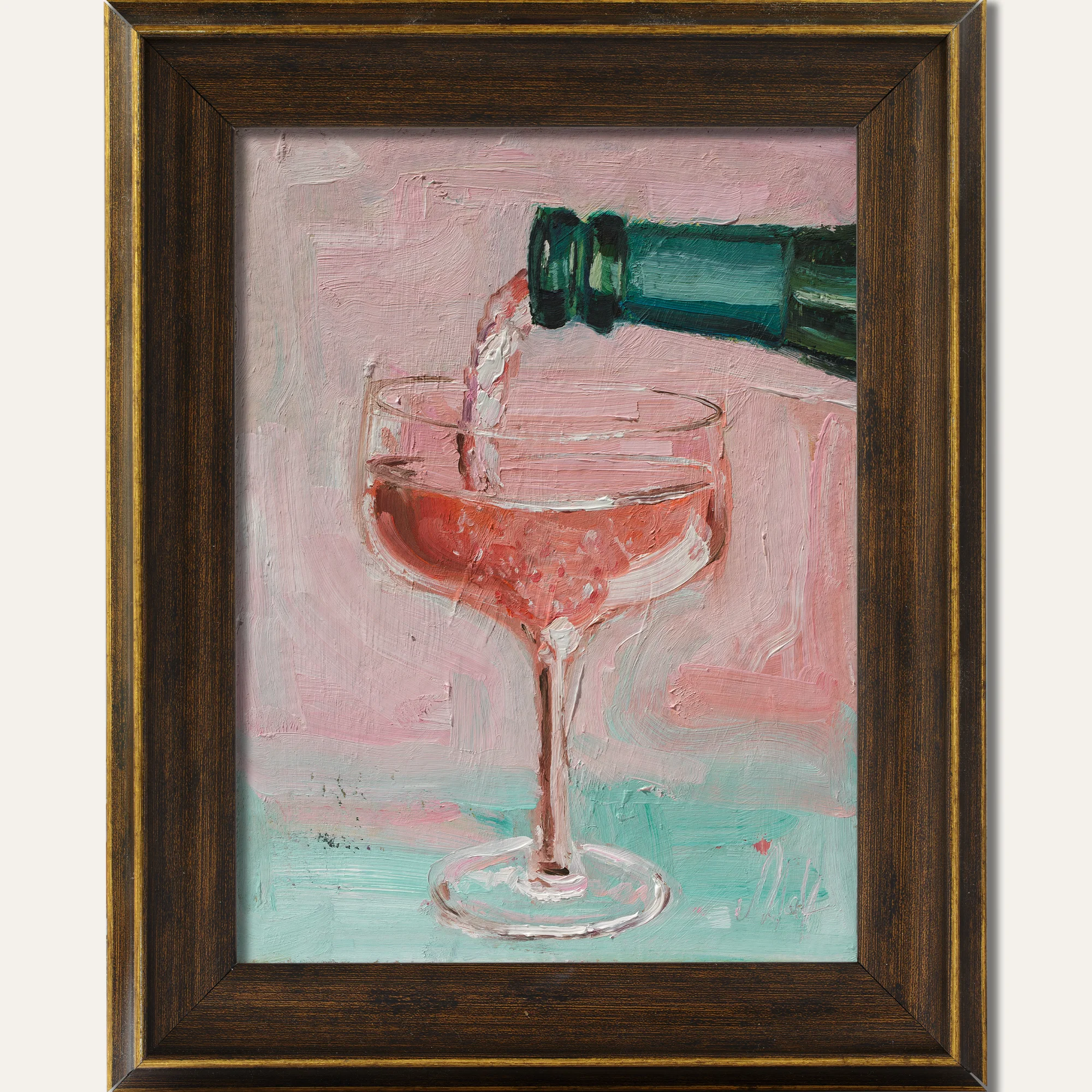Pink Champagne Oil Painting FramedPink Champagne Oil Painting: Framed Still Life Bar Decor Drink Cocktail Art