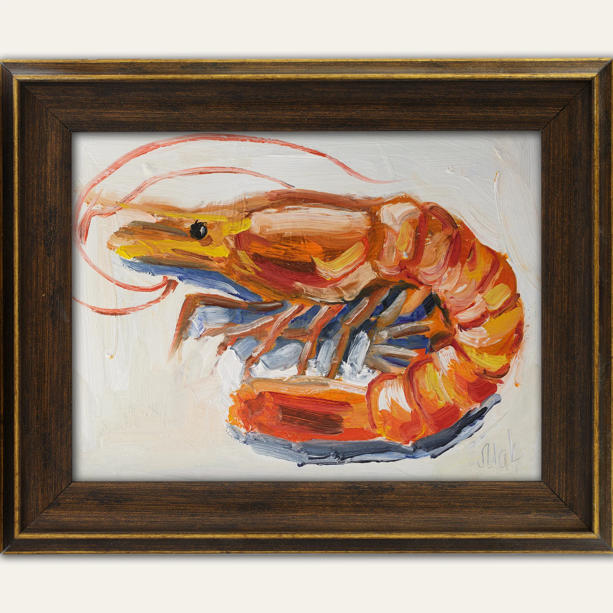 Prawn Oil Painting Framed Shrimp Original Wall Art Seafood Framed Fish ArtworkPrawn Oil Painting Framed Shrimp Original Wall Art Seafood Framed Fish Artwork