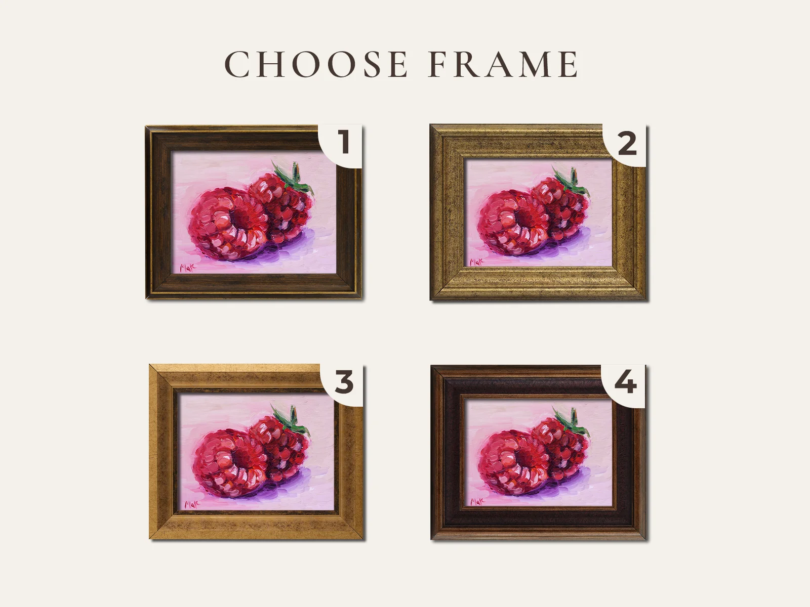 Be the first to review “Raspberry Oil Painting Framed Small Fruit Original Wall Art Kitchen Impasto Artwork”