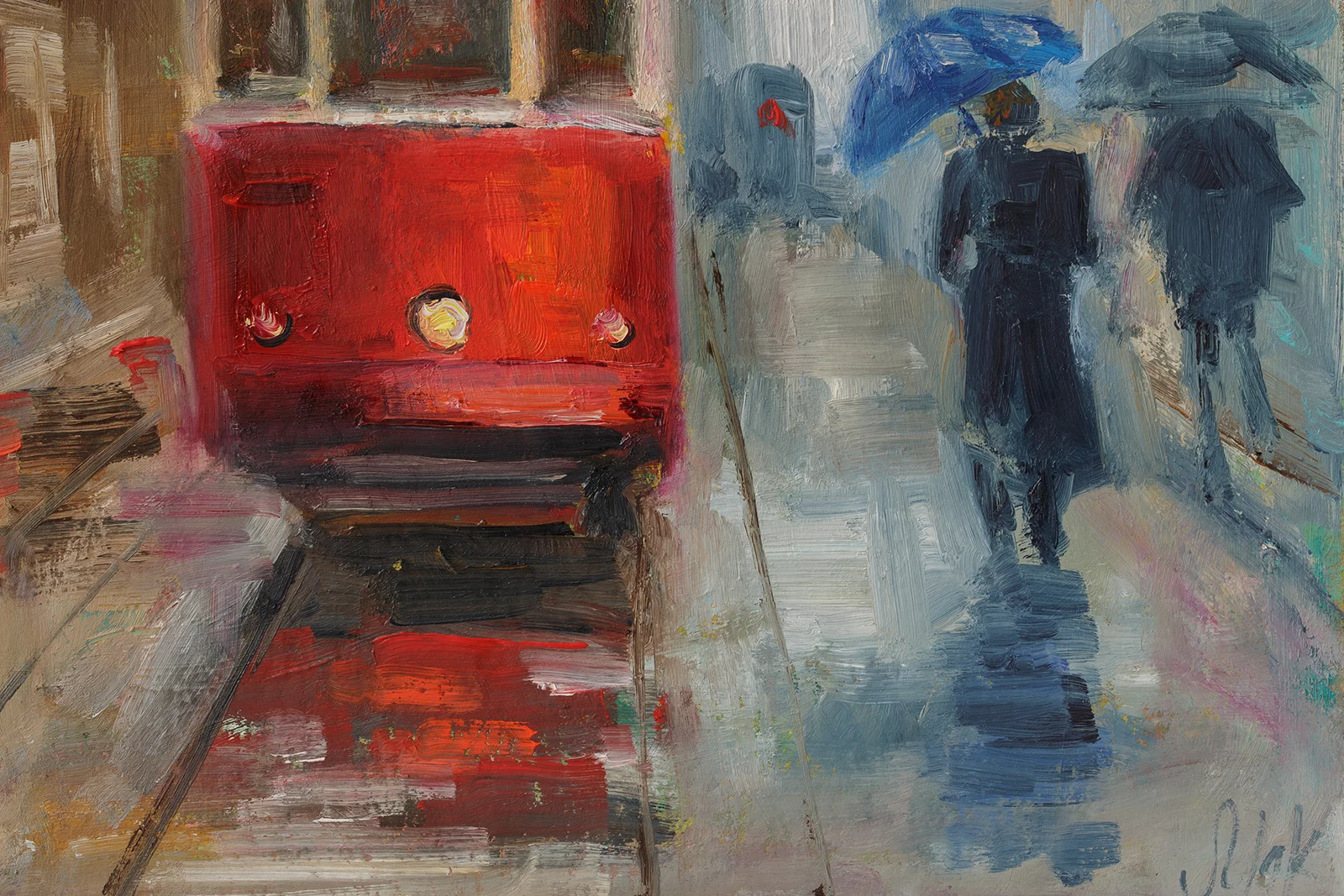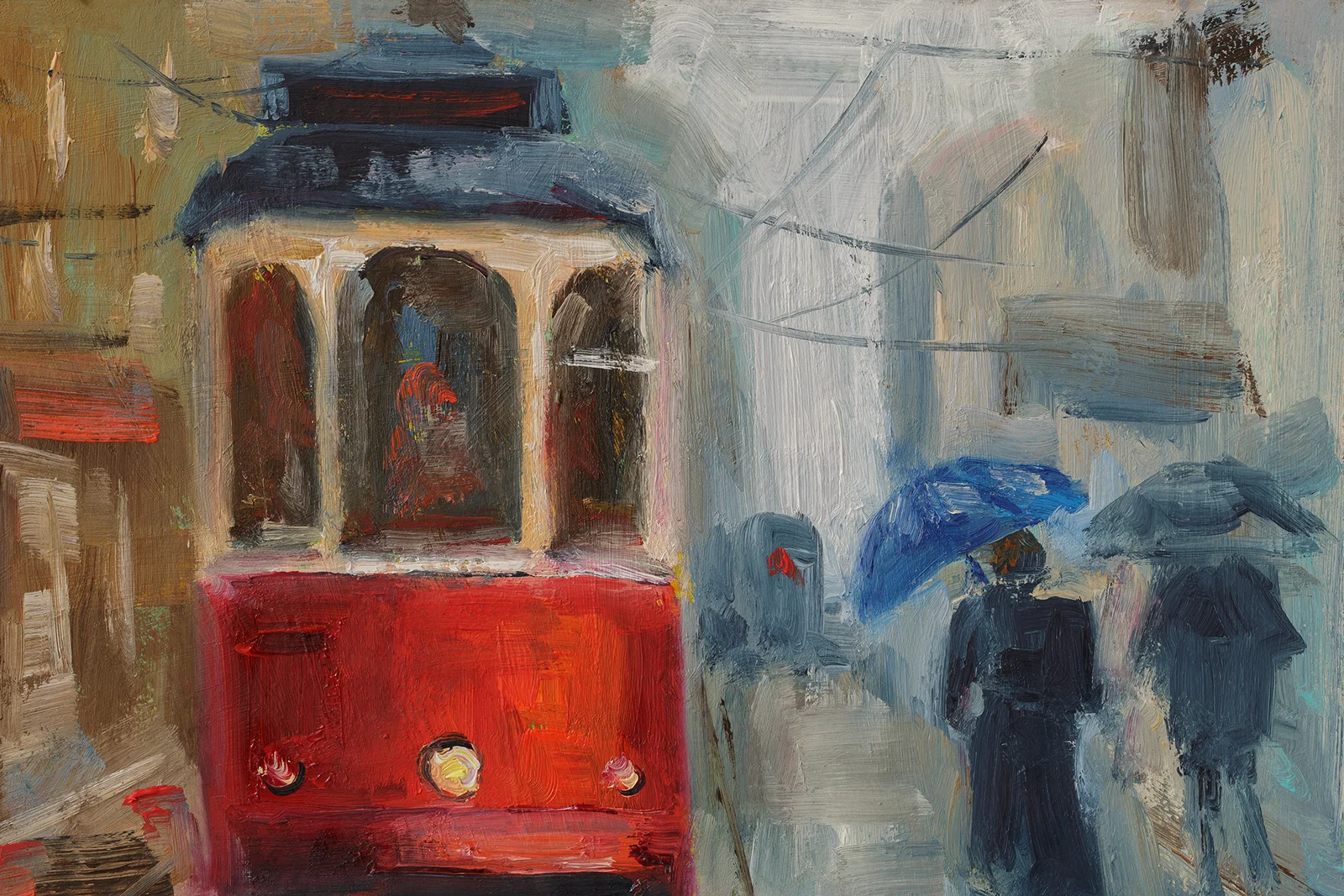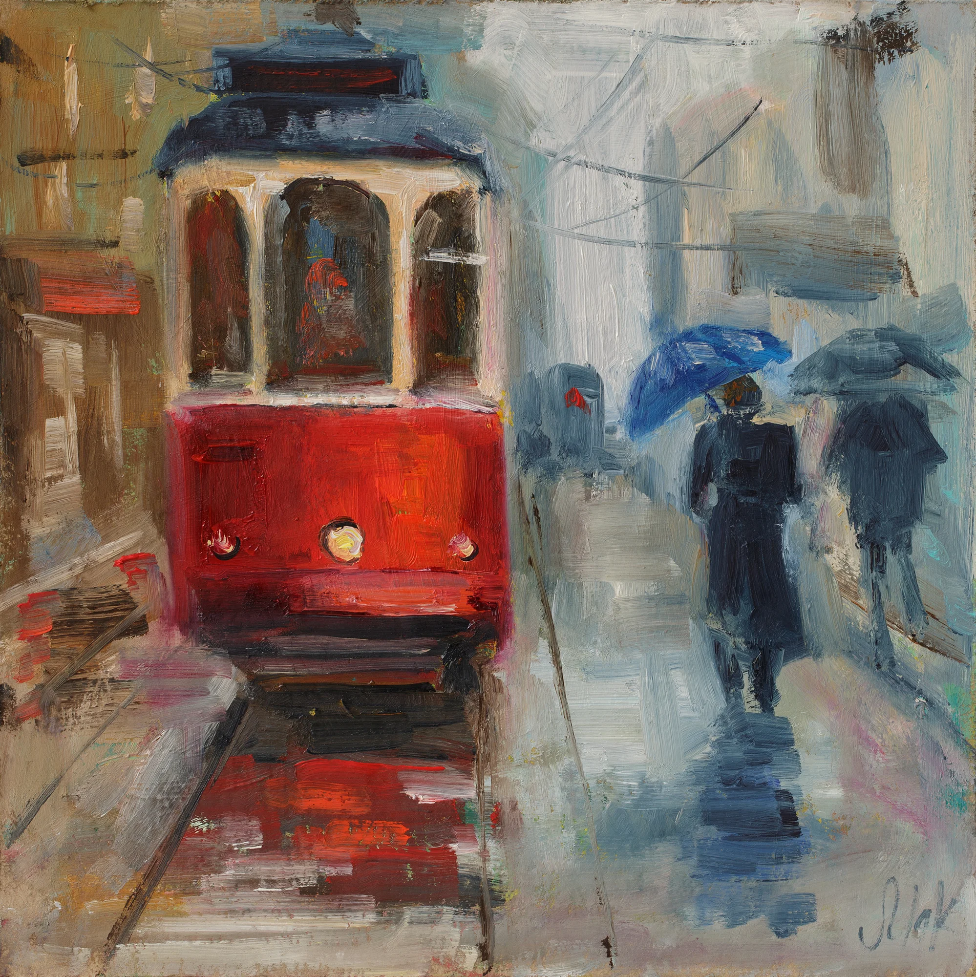 Red Tram Oil Painting FramedRed Tram Painting Framed New York Original Wall Art City Oil Painting NY Cityscape