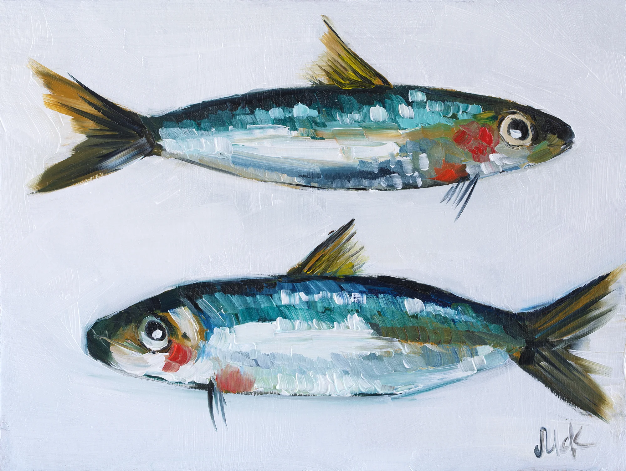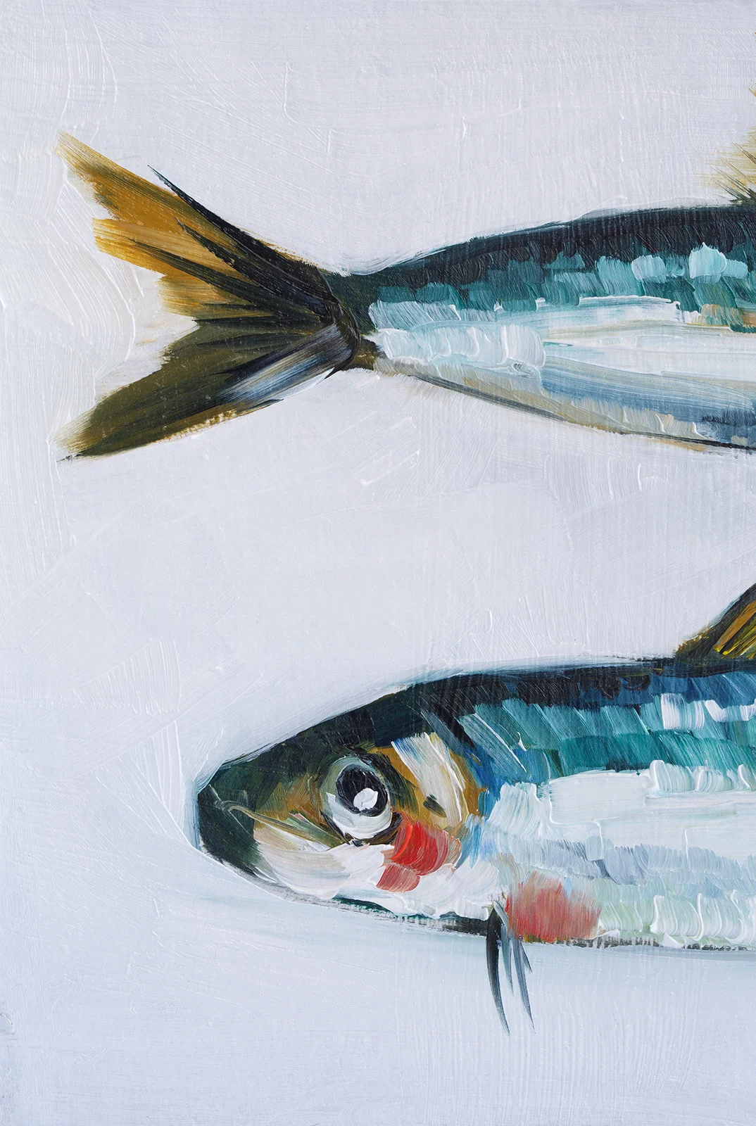 Sardines Oil Painting in Frame: French Kitchen Still Life Wall ArtSardines Oil Painting in Frame: French Kitchen Still Life Wall Art