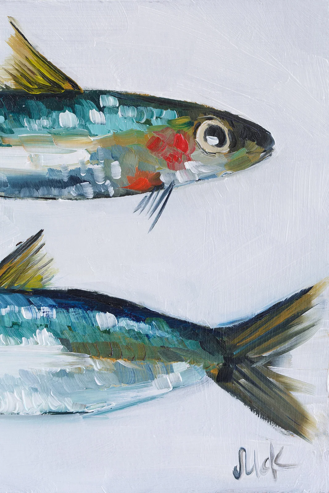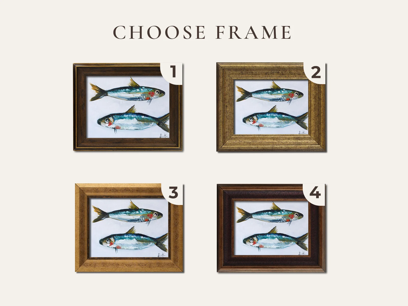 Sardines Oil Painting in Frame: French Kitchen Still Life Wall Art