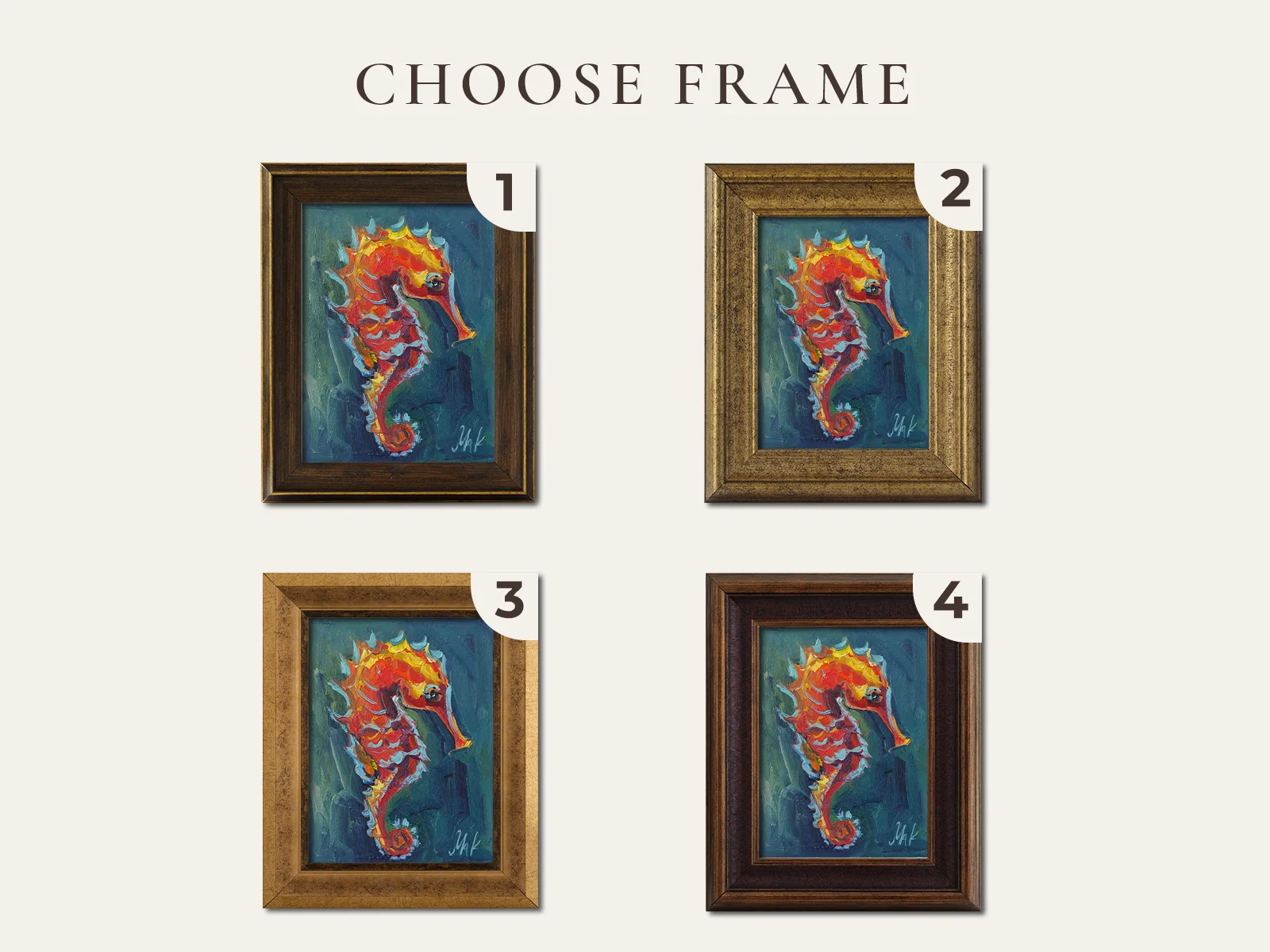 Be the first to review “Seahorse Oil Painting Framed Fish Original Wall Art in Frame Sea Animals Marine Artwork Nautical Wall Art”