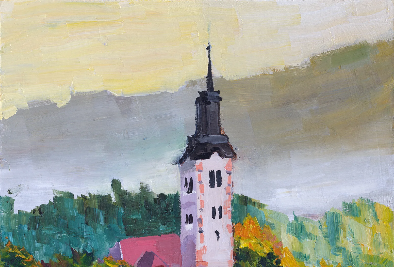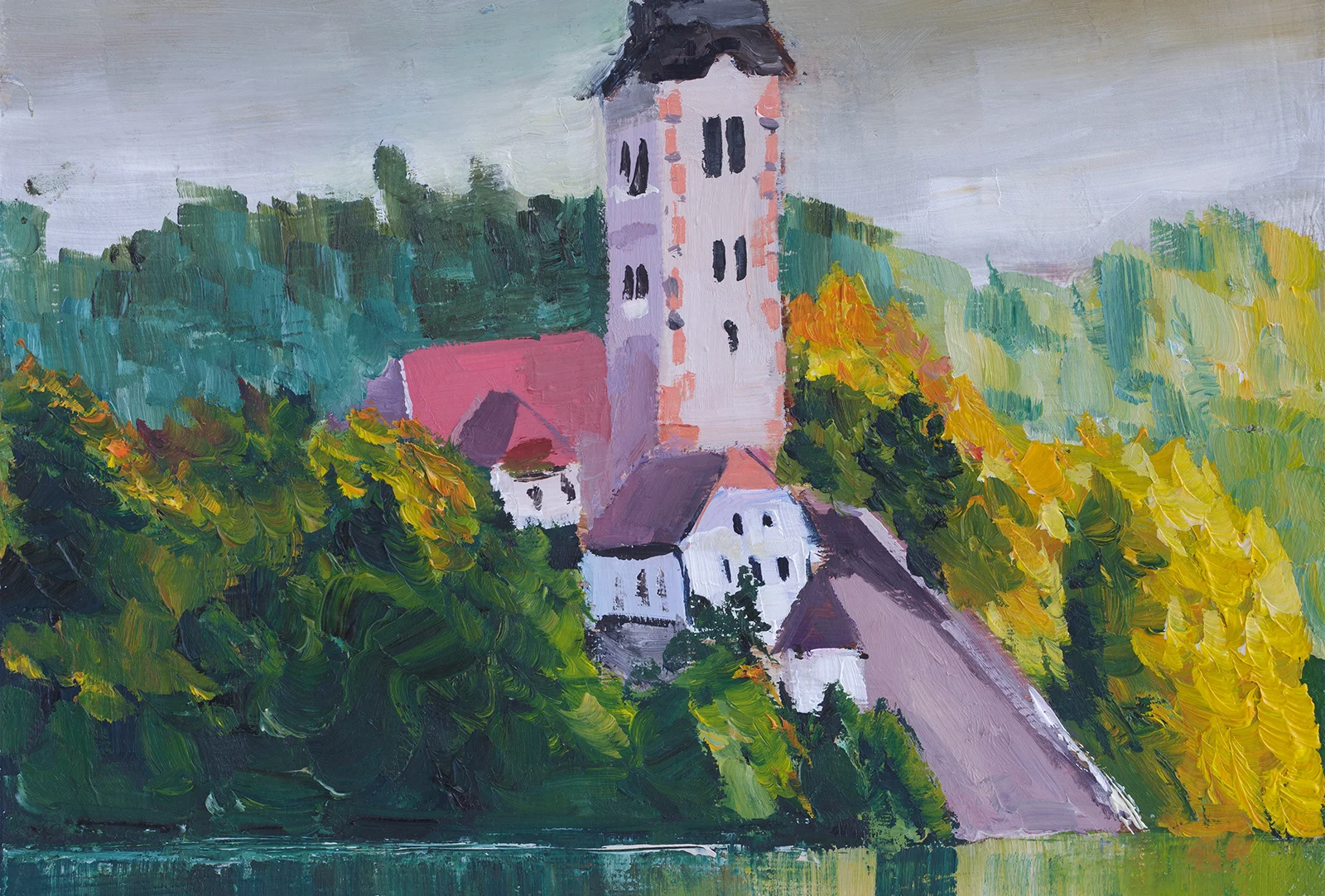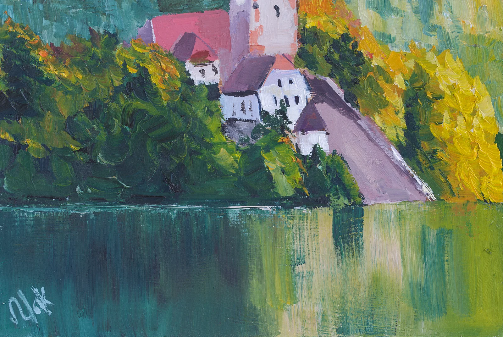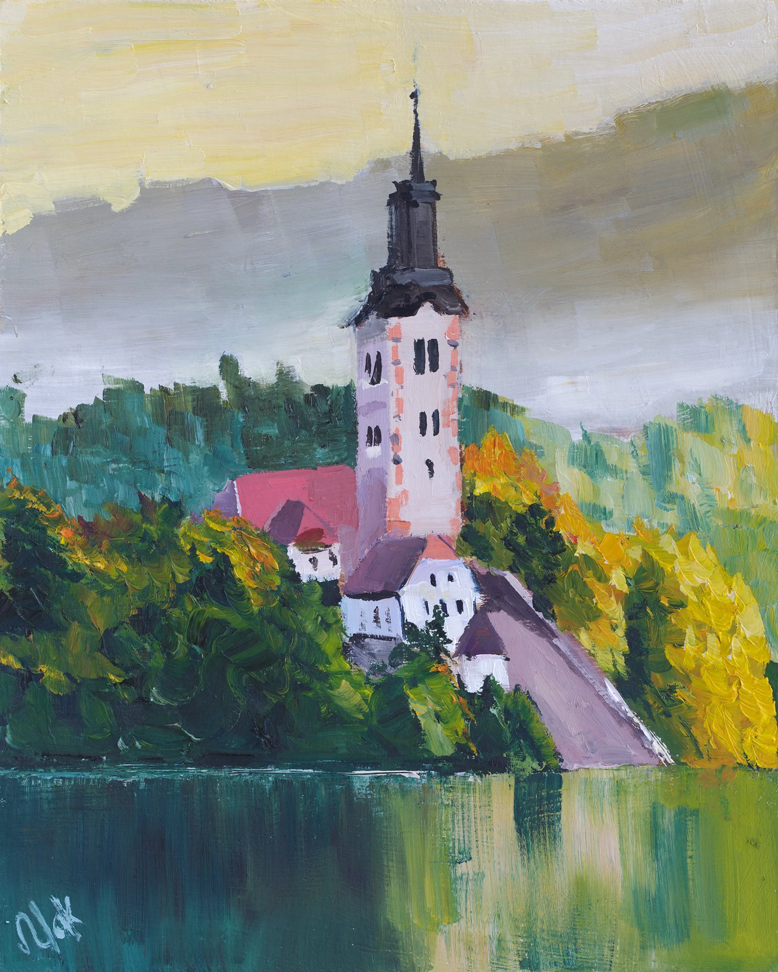 Slovenia Oil Painting Lake Bled Original Wall Art Europe Landscape Artwork FramedSlovenia Oil Painting Lake Bled Original Wall Art Europe Landscape Artwork Framed
