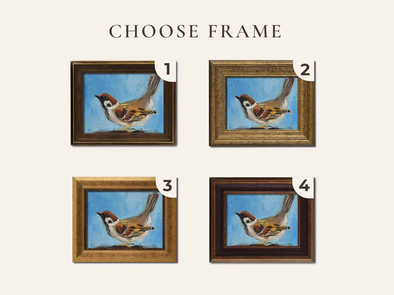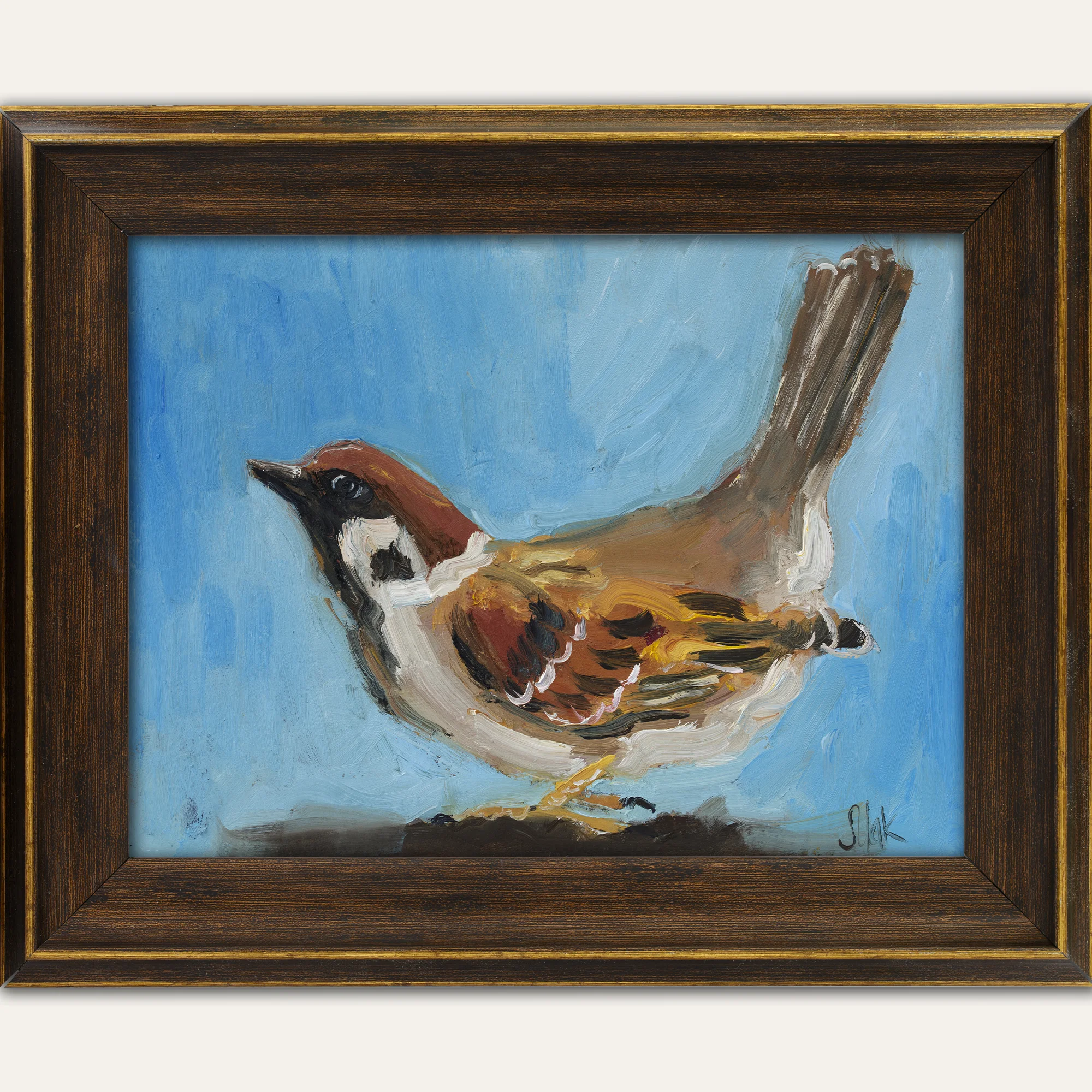 Be the first to review “Sparrow Oil Painting Framed Bird Original Small Animal Wall Art 8×6””