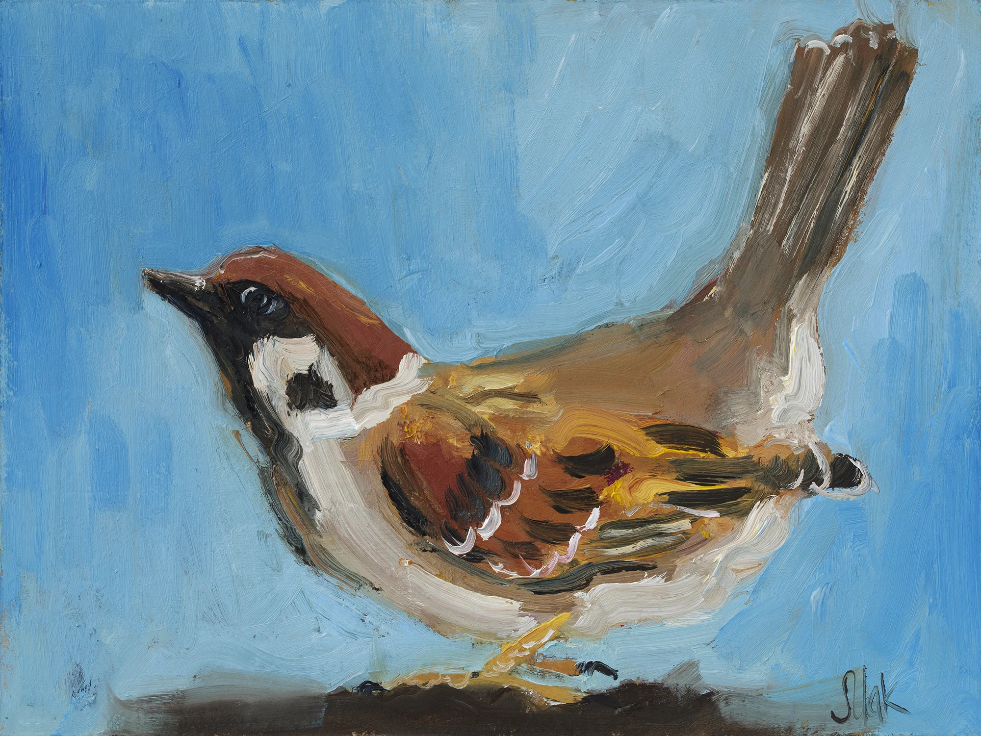Sparrow Oil Painting FramedSparrow Oil Painting Framed Bird Original Small Animal Wall Art 8×6”
