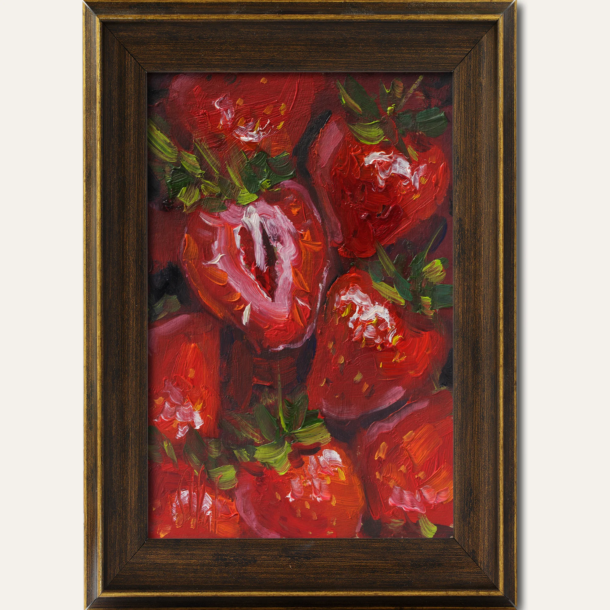 Strawberries Oil Painting Framed Still Life Kitchen Wall Art Berry Summer DecorStrawberries Oil Painting Framed Still Life Kitchen Wall Art Berry Summer Decor