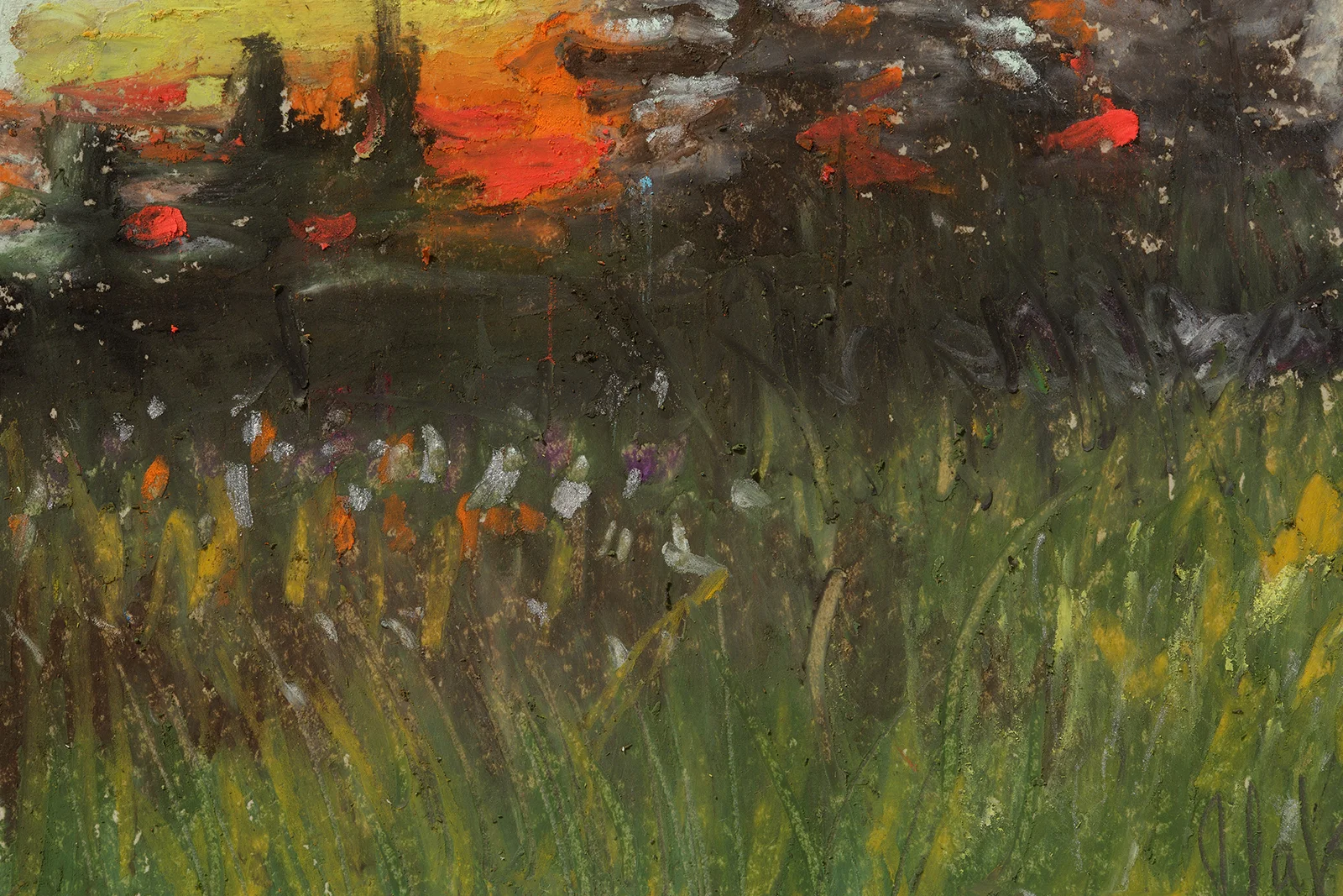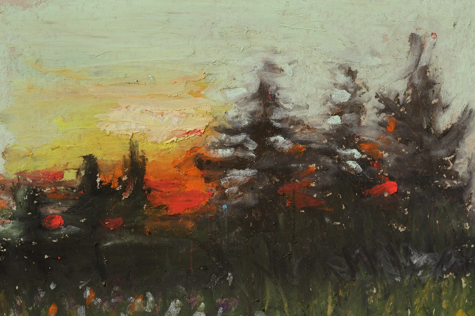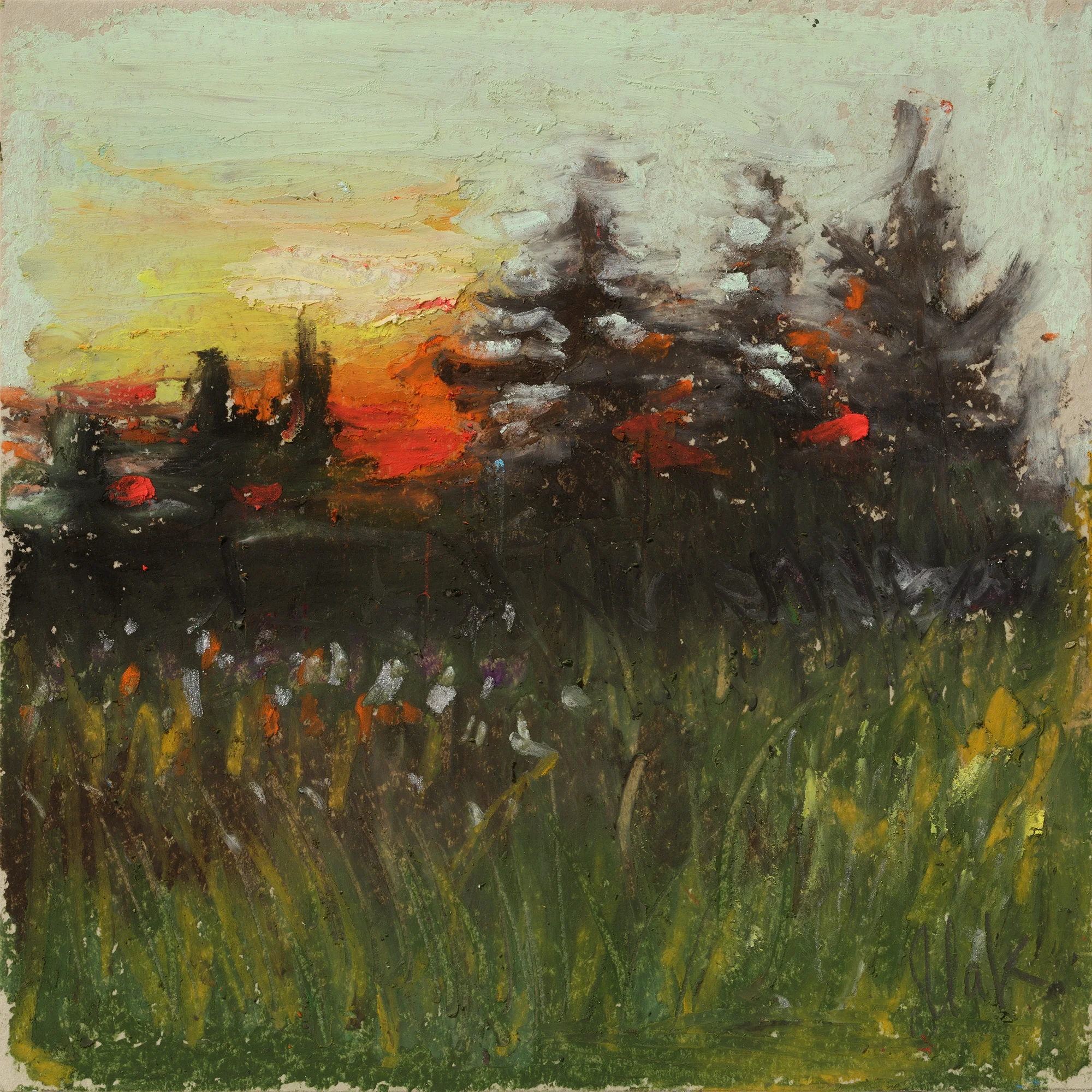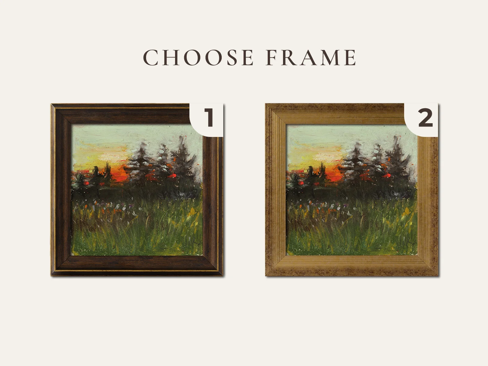 Tiny Pine Landscape Sunset Original Oil Pastel Painting, Framed ArtworkTiny Pine Landscape Sunset Original Oil Pastel Painting, Framed Artwork