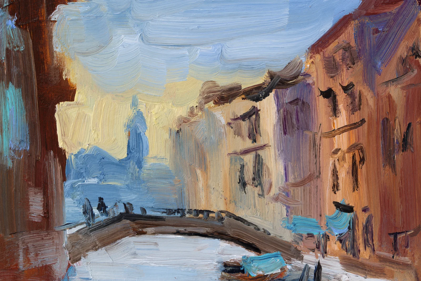 Venice Italy Oil Painting: Abstract Seascape Grand Canal Art FramedVenice Italy Oil Painting: Abstract Seascape Grand Canal Art Framed