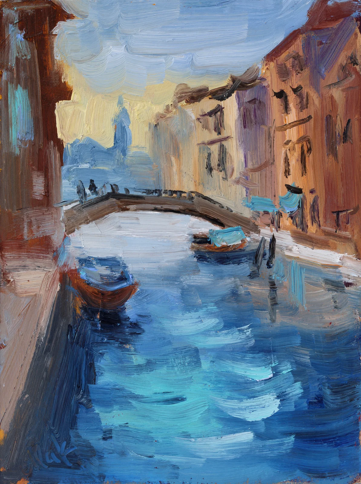 Venice Italy Oil Painting: Abstract Seascape Grand Canal Art Framed
