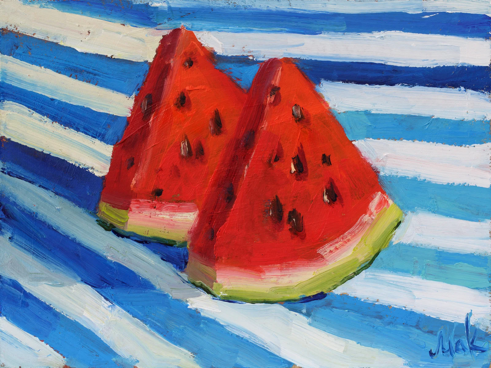 Watermelon Slices Oil Painting Fruit Original Wall Art Small Summer Home DecorWatermelon Slices Oil Painting Fruit Original Wall Art Small Summer Home Decor