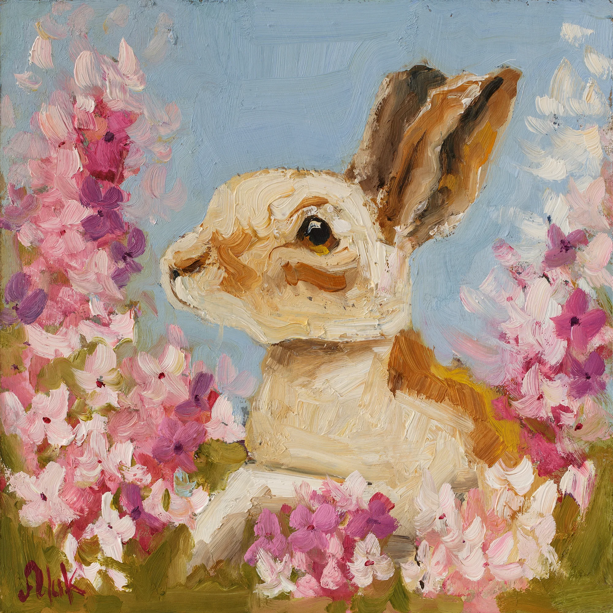Be the first to review “White Rabbit Oil Painting: Easter Bunny with Flowers, Original Framed Art”