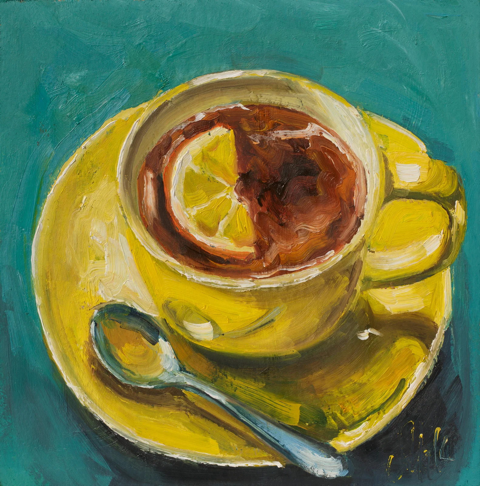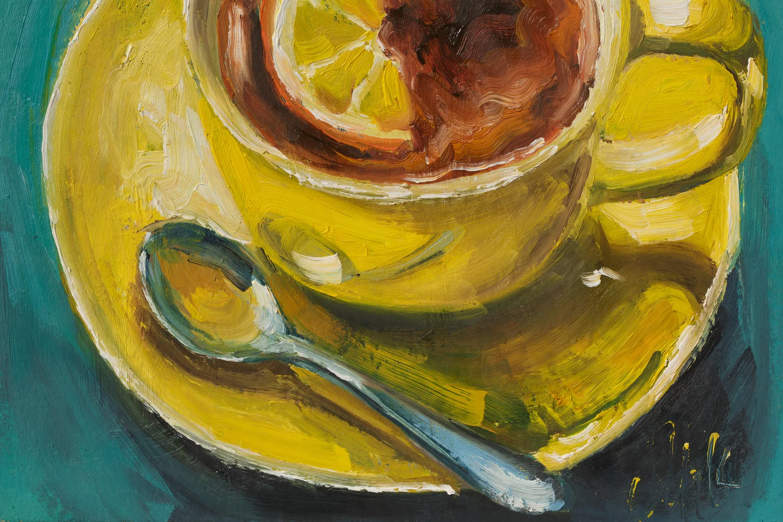 Yellow Teacup Painting Still Life Wall Art, Cup Original Oil Artwork, Kitchen DecorYellow Teacup Painting Still Life Wall Art, Cup Original Oil Artwork, Kitchen Decor